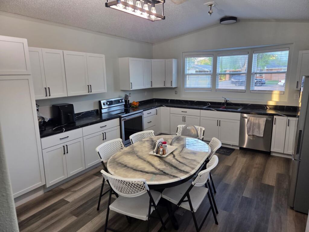 Relaxează-te cu întreaga familie în acest loc liniștit în care să stai. De la curtea împrejmuită din spate până la parcul de vizavi, pentru ca familia ta să se bucure. În bucătărie vei găsi cafetieră și necesități de bucătărie de bază. (Cuptor, frigider și cuptor cu microunde, oale și tigăi, oale și tigăi, ustensile de gătit, veselă) Livingul are câteva canapele și un televizor de 55”și se relaxează pentru noapte! Un dormitor are un pat matrimonial, iar al doilea dormitor are pat supraetajat (twin peste plin). Baia are o cadă mare cu duș!