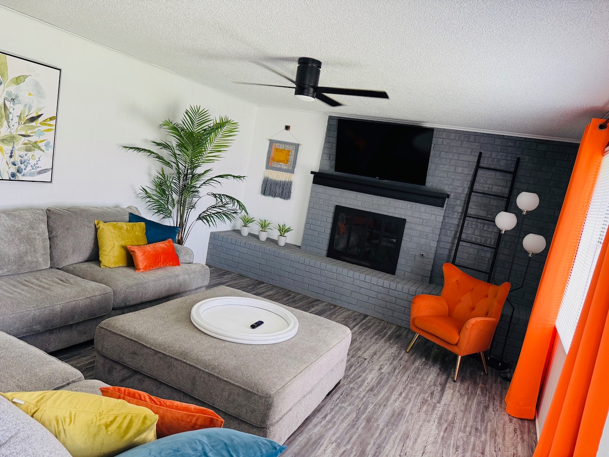 Welcome to this centrally located, designer-styled two-story 3-bedroom, 2-bath home. Relax on the cozy sectional, enjoy TVs in every bedroom, or cook in the fully equipped kitchen. Dine in style, do laundry with ease, and park in the 2-car garage. Board games and a poker set make fun nights with family or friends. Modern, comfortable, and perfect for relaxing or entertaining!