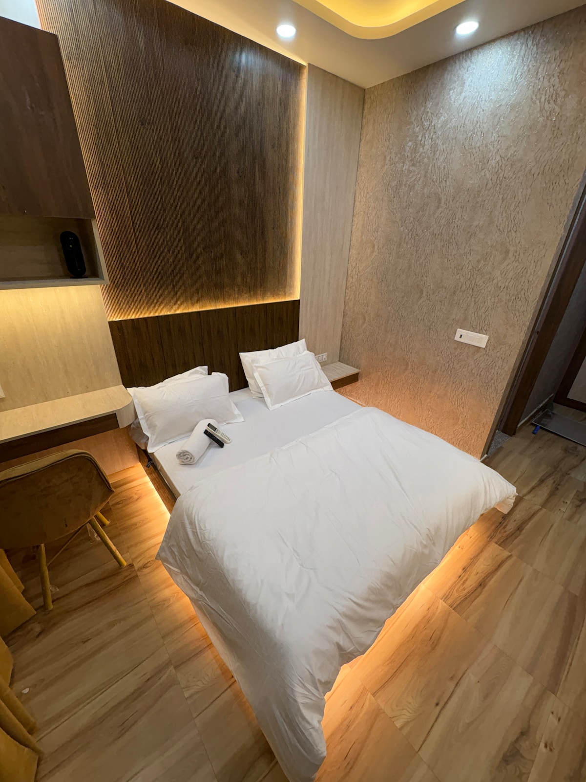 Relaxează-te în acest studio calm și luxos, cu căldura de acasă și atmosfera unui hotel de lux. Mobilat cu un pat matrimonial de pluș și decor modern. Dotări: Magazin alimentar non-stop Chicinetă modernă Wi-Fi și TV de mare viteză Parcare securizată în afara turnului, dar securizată non-stop Primele 2 etaje au magazine comerciale, care oferă: Servicii de spălătorie Salon Cafenea Magazin medical Acces ușor la India Expo Mart, Buddh International Circuit. Perfect pentru cupluri, persoane care călătoresc solo sau parteneri de afaceri.