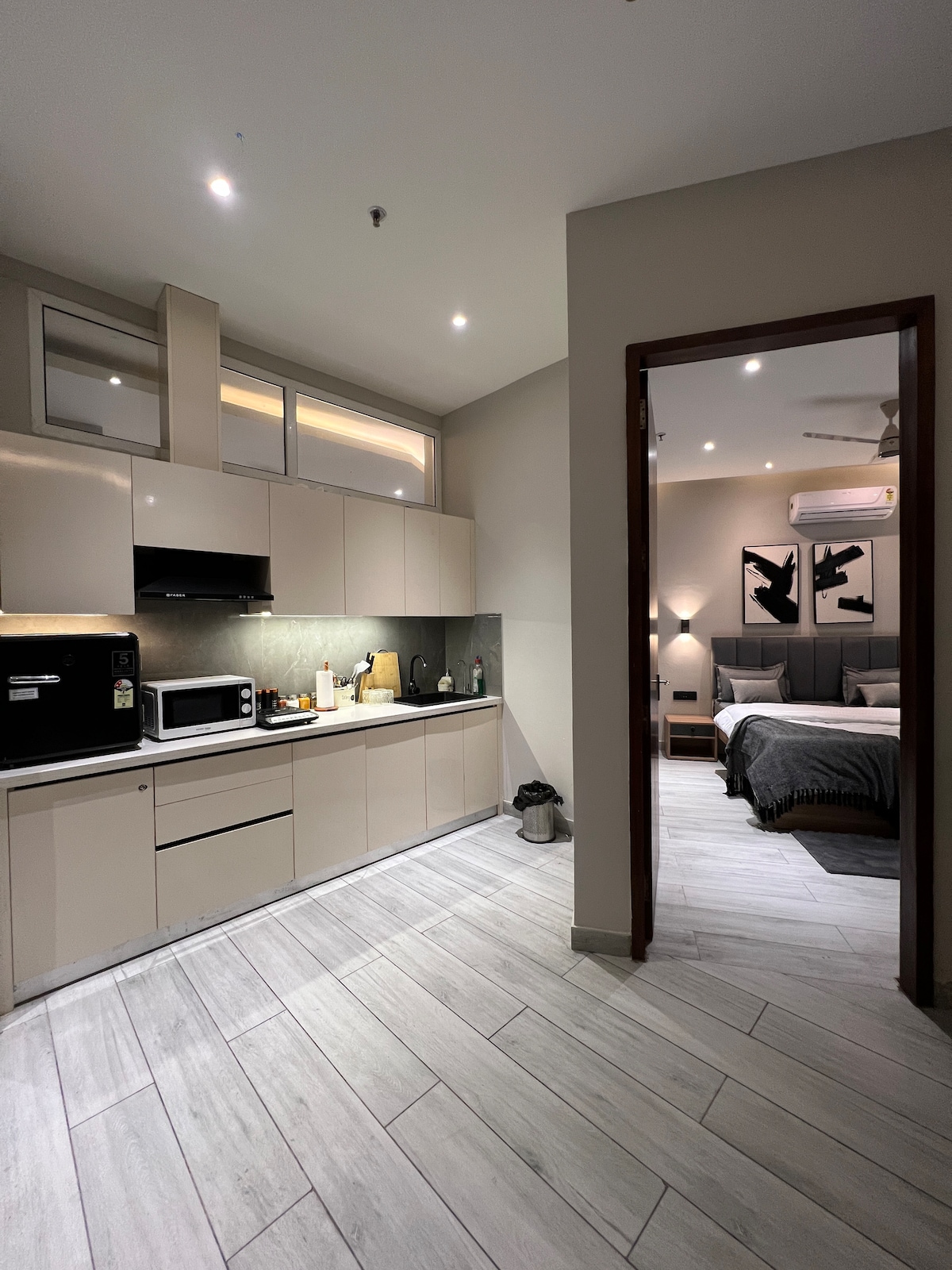 Bine ai venit la Valuura Stay, evadarea ta liniștitoare de lux în stil boho în Galaxy Blue Sapphire, Greater Noida. Proiectat în tonuri moi de nud, alb și maro cald, acest studio îmbină confortul unui hotel de 5 stele cu o atmosferă caldă și liniștită de acasă. Perfect pentru cupluri, persoane care călătoresc în interes de afaceri și oricine caută o ședere frumos organizată, demnă de IG. Indiferent dacă vizitezi pentru muncă, o escapadă de weekend, o excursie de cumpărături sau pur și simplu o pauză confortabilă, acest studio îți oferă combinația perfectă de lux, comoditate și confort.