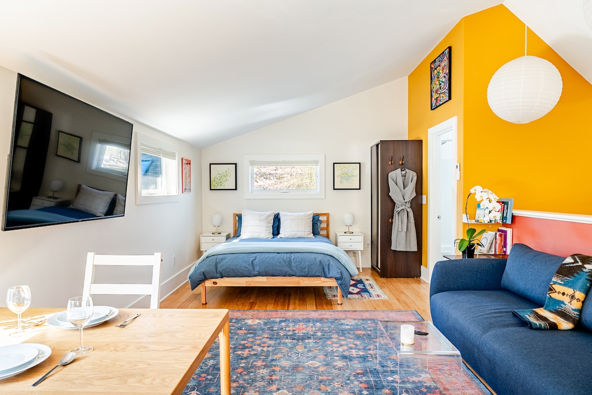 Evadează în apartamentul nostru privat Master Suite Studio din cartierul iubit Green Lake din Seattle. Perfect pentru 2-3 oaspeți, acest refugiu de la etajul al doilea are un pat matrimonial, un șemineu confortabil cu gaz și o baie imensă de tip spa cu o cadă cu hidromasaj. La doar un bloc de lac, este o evadare rezidențială ideală, cu acces facil la magazinele și cafenelele locale. Bucură-te de o ședere confortabilă și relaxantă în acest spațiu unic.