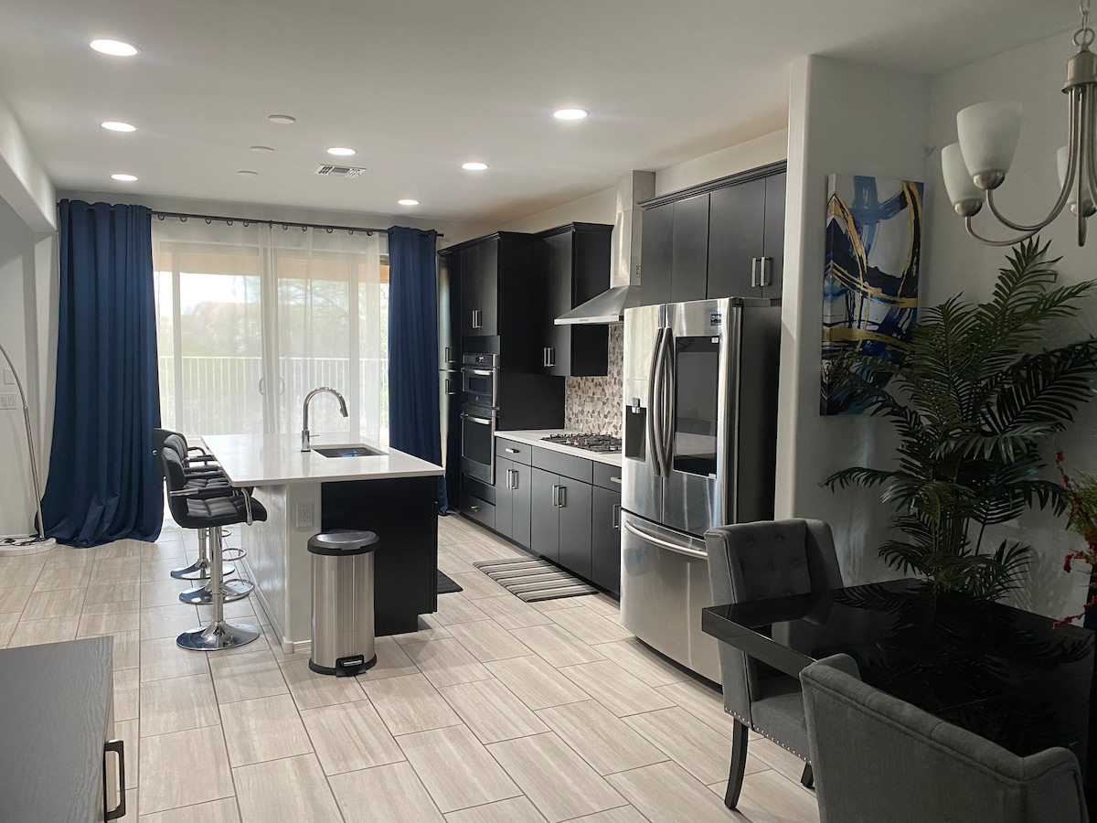 Casa noastră foarte curată, cu 2 dormitoare și 2 băi, dispune de un scaun de masaj zero masaj, saltele confortabile, pleduri moi, o bucătărie complet aprovizionată, Wi-Fi rapid și porturi USB convenabile în 3 camere. Cartierul are o piscină comunitară, cadă cu hidromasaj, acces la sala de fitness, traseu de mers pe jos și ramada, de exemplu! Această locuință are 6 persoane, curte privată și 2 locuri de parcare acoperite. Chiar după colț de magazinul alimentar, cinematograf și mai multe terenuri de golf! Acest spațiu curat și relaxant te va impresiona cu siguranță!