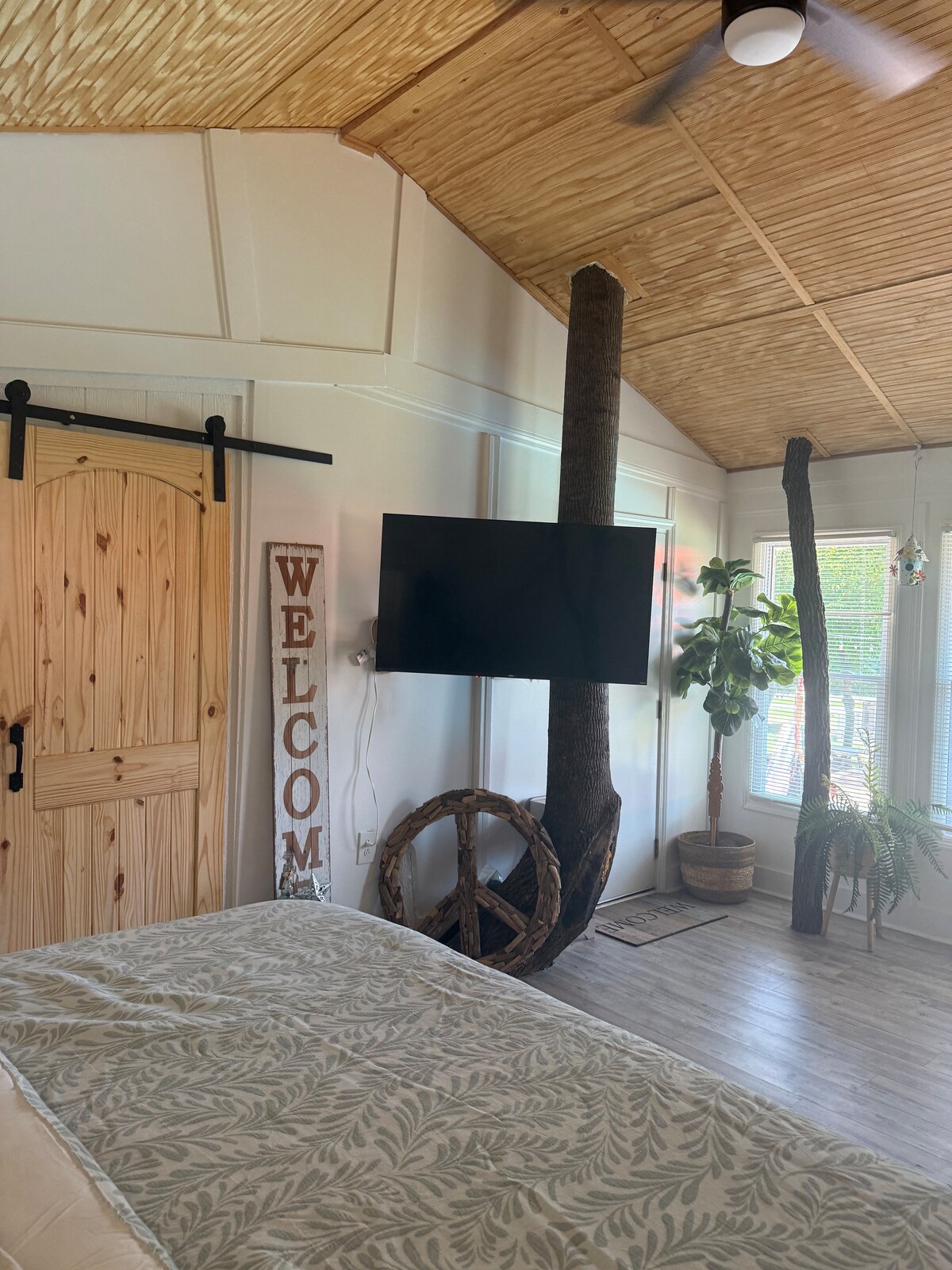 MINI PRIVATE OASIS. 6 MILES TO DOWNTOWN GREENVILLE! LAKEFRONT + PRIVATE DOCK NY Times #1 AMERICAN CITY! Experience modern luxury in your serene mini suite. Please note: the suite is located as an extension attached to a classical Scandinavian chalet. The suite is private. No shared spaces, shared soundproofed wall. 6mi downtown Greenville Amenities include: - Private entrance & patio - Private dock - 43” Roku TV - Charcoal grill, fire pit - Luxury toiletries - Blackout curtains