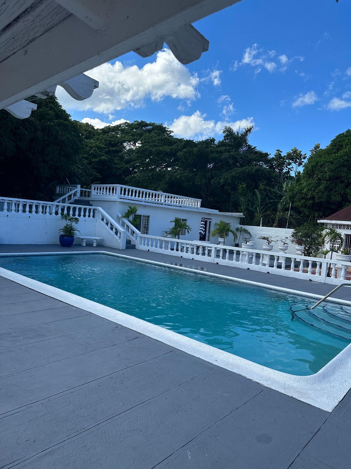 Luxe Modern Centrally Located Open Concept W/ Modern Decor.7Beds | 2.5 Baths, Liv, Dining, Well Equipped Kitchen , Sparkling Pool w/ Gazebo, games, Pool Table. Spacious master w/ nightstands and a dresser, plus a spa-like ensuite bathroom. Curte mare închisă. Al doilea dormitor cu pat matrimonial, canapea extensibilă cu rotile, TV, noptieră, al treilea dormitor cu pat dublu și pat suprapus, noptieră și dulap. Al doilea duș cu cap de ploaie. La 5 minute de Pearly Beach, Laughing Waters, Dunn's River Falls, Mystic Mountain, Dolphin Cove, 1212L