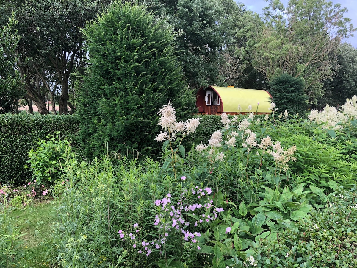 Cauți o experiență unică în care să poți sta într-o casă de grădină confortabilă într-o grădină mare? În combinație cu farmecul fermei vechi izbitoare? Casa din grădină are frigider, Wi-Fi și aragaz cu 2 ochiuri. Baia și toaleta sunt dotări comune și sunt situate în fermă. Grădina mare este privată, însorită și cu frunze. În sezonul francez, poți culege mere, pere și mure. De asemenea, poți lucra în grădină, foarte relaxant. Priveliști spectaculoase!