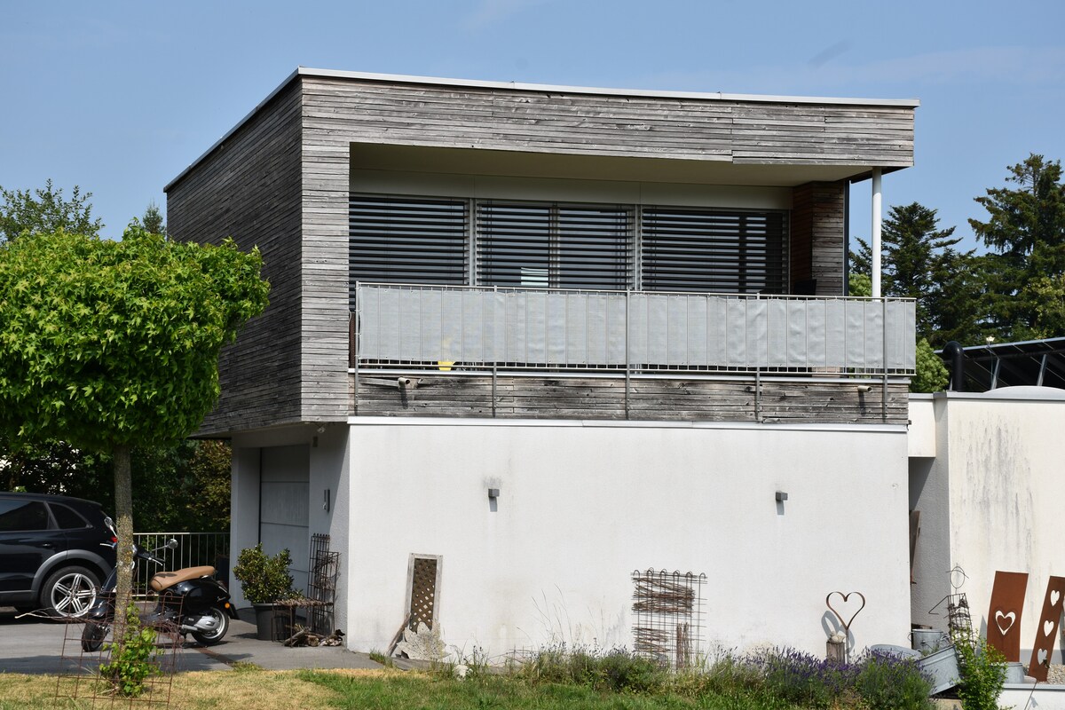 Apartamentul de 40 m² este adiacent frumosului cartier al vilei din cartierul „im Dorf” din Bregenz. La centrul orașului și la lac se poate ajunge pe jos în doar câteva minute de mers pe jos. Există, de asemenea, o brutărie și o stație de autobuz chiar afară. Apartamentul doarme 2 (1 pat matrimonial, 1,60 m lățime) plus o bucătărie bine echipată cu mașină de spălat vase. Există, de asemenea, Wi-Fi gratuit, TV, cafetieră și parcare gratuită.