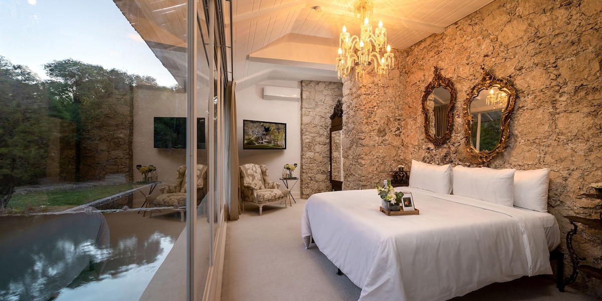 Lasă-ne să te răsfățăm, la urma urmei, este o vacanță! Oferim curățenie zilnică, asistență în transportul de la aeroport. Casita Topaz romantică, privată, exotică oferă un pat king-size, șemineu activat de la distanță, apă purificată, cafea nesfârșită, cafea nesfârșită, WIFI rapid, TV de 55"cu Netflix gratuit, tone de aplicații de streaming live pentru toate posturile TV majore din SUA, News & Sports, filmeși seriale TV actuale. DE ASEMENEA, oferim curățenie zilnică, asistență în transportul aeroportuar, oferim intimitate, dar și ajutor dacă ai nevoie!