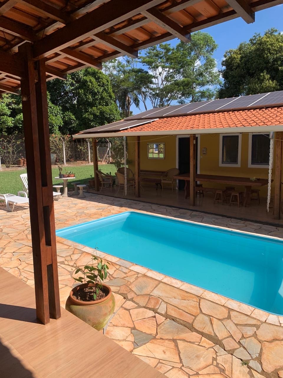 Rodovia Franca/Ribeirão Corrente - SP - KM 10 Condomínio Alto da Boa Vista 03 dormitórios, sendo 01 suíte e 2 banheiros. Sala 02 ambientes, cozinha, varanda com Blindex, churrasqueira, fogão a lenha e freezer. Piscina climatizada iluminação LED e cascata. Campo de Futebol Wi-Fi Acomodações: 21 pessoas Não fornecemos roupa de cama e banho.