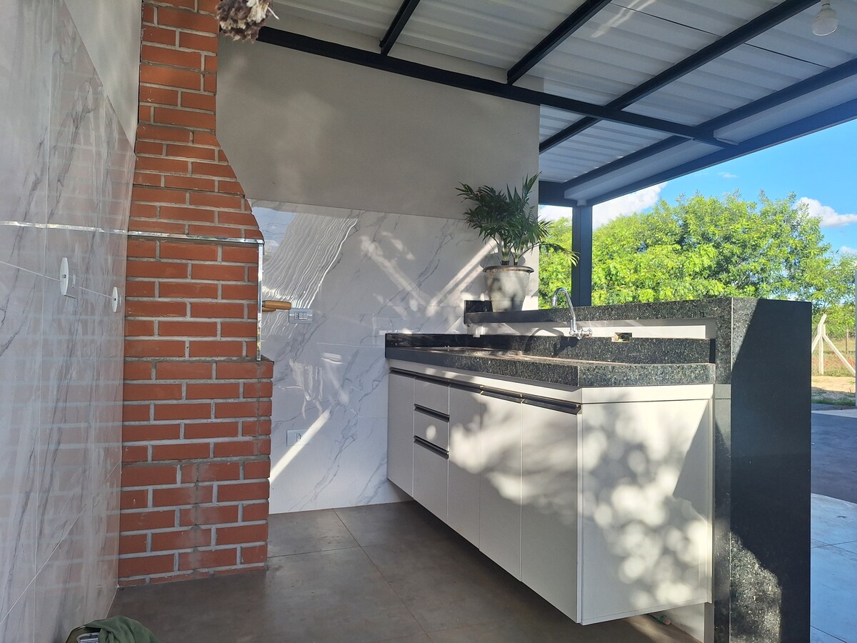 Casă confortabilă și bine situată, aproape de intrarea în oraș. 500 m de cumpărături, McDonald's, supermarket și benzinărie, precum și 900 m de spital/Unimed. invitație la cazare pentru Thermas Acqualinda și publicul larg. Cameră cu aer condiționat, ventilator de tavan și birou de studiu, care poate găzdui până la 4 persoane. Wi-Fi, TV Smart și o bucătărie dotată cu frigider, cuptor cu microunde, aragaz, purificator de apă și ustensile de bucătărie. Ideal pentru familii sau pentru cei care caută confort.