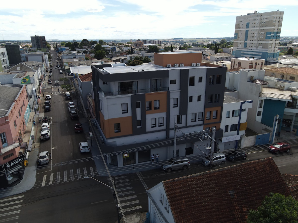 Loft moderno no centro de Guarapuava, com cama queen, cozinha completa, Wi-Fi, TV Smart e ar-condicionado quente e frio. Próximo a restaurantes, supermercados, academia e farmácias, perfeito para estadias práticas e confortáveis.