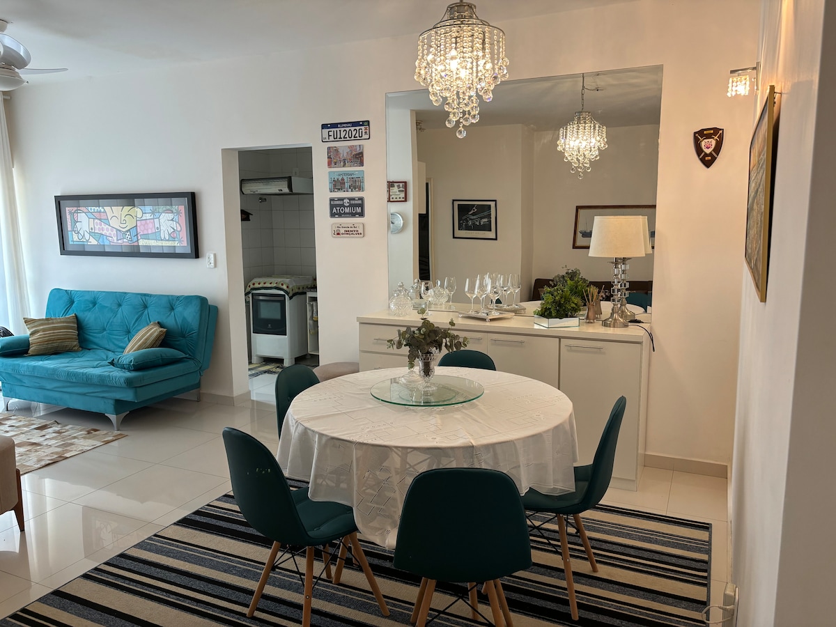 Apartament echipat, spațios și plăcut, aerisit și luminos. Capacitate pentru 6 oaspeți, situată la 50 de metri de una dintre cele mai bune plaje din Guarujá. Excelent pentru familie, aproape de principalele puncte ale orașului, Morro do Maluf, Mirante das Galhetas, Shopping La Plage, fiind lângă un centru gastronomic și comercial cu mai multe opțiuni de magazine, farmacii și piețe, cum ar fi Pão de Açucar, Extra etc., posibilitatea de a se bucura de toate acestea, fără a îndepărta mașina din garaj.