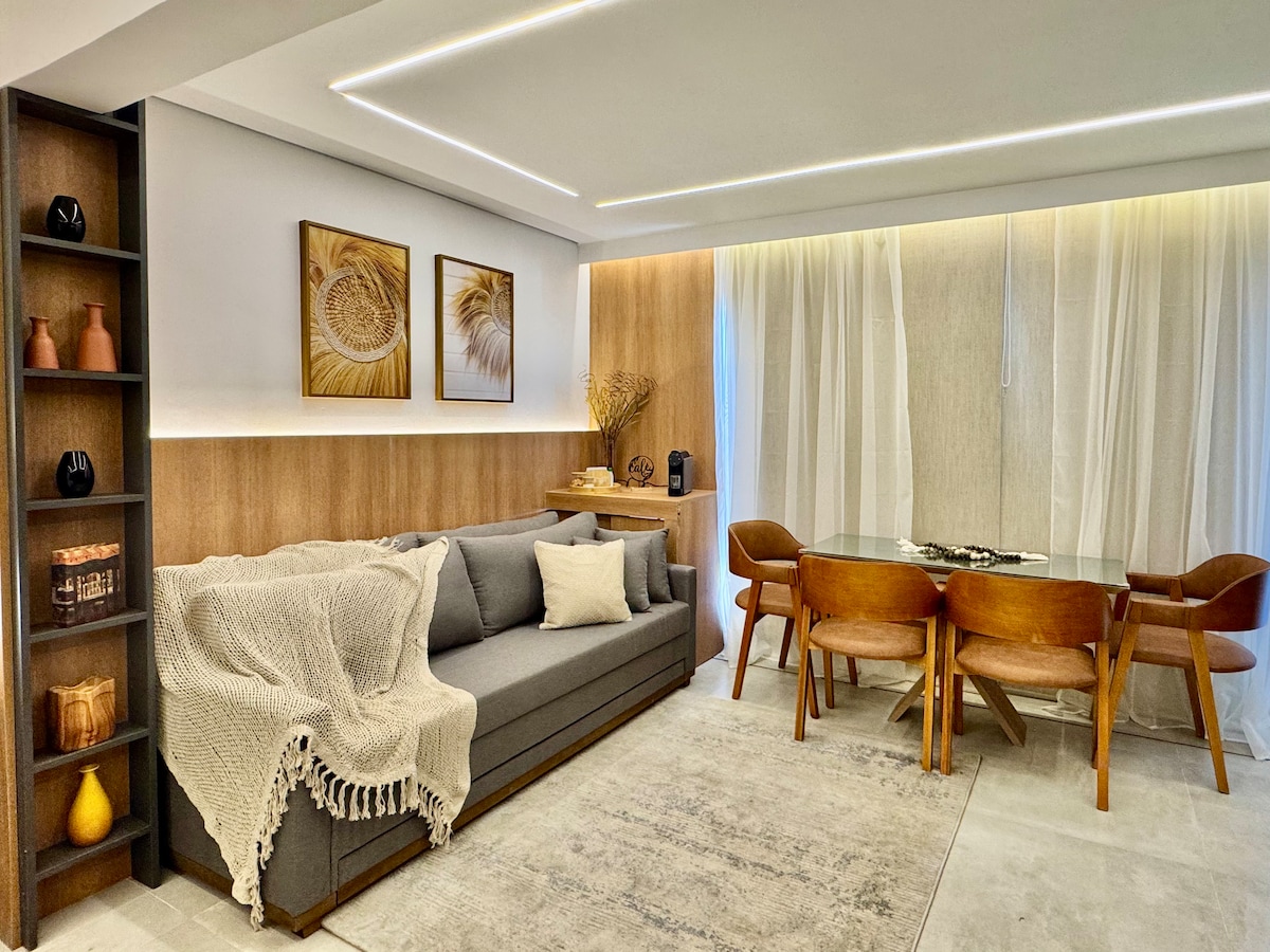 Studio mobilat și confortabil la Gran Maia Giardino- Guarulhos. Ideal pentru șederi de scurtă sau lungă durată. 2 persoane cu pat dublu și canapea. Bucătărie dotată cu aragaz, cuptor cu microunde, Airfryer și alte articole. Condominium cu piscină, centru de fitness, loc de joacă, jucărie, spălătorie, potrivită pentru animale de companie, băcănie non-stop și parcare gratuită. Locație centrală privilegiată, acces facil la drumurile principale ale orașului, la 7 km de Aeroportul Gru și aproape de mall-uri, farmacii și restaurante.