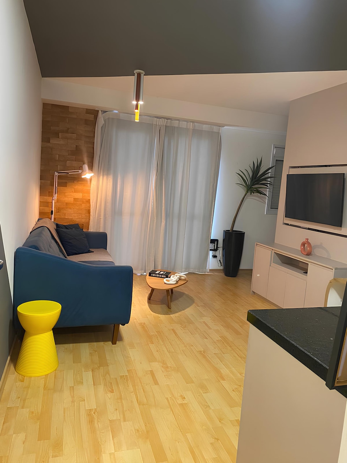 Îmbrățișează-ți studioul cu vedere frumoasă aproape de aeroport, cu tot confortul și comoditatea locuinței tale, cu un decor frumos conceput pentru șederi scurte sau lungi Perfect pentru cupluri, persoane care călătoresc singure pentru petrecerea timpului liber/muncă sau familii cu până la 2 copii. Structură pentru până la 4 persoane (pat dublu + canapea extensibilă). Mercados, farmacie, brutărie, în apropiere. Pentru cei care vin cu mașina, avem un loc de parcare =) Garsonieră la 11 minute cu mașina de Aeroportul Internațional Guarulhos - Gru