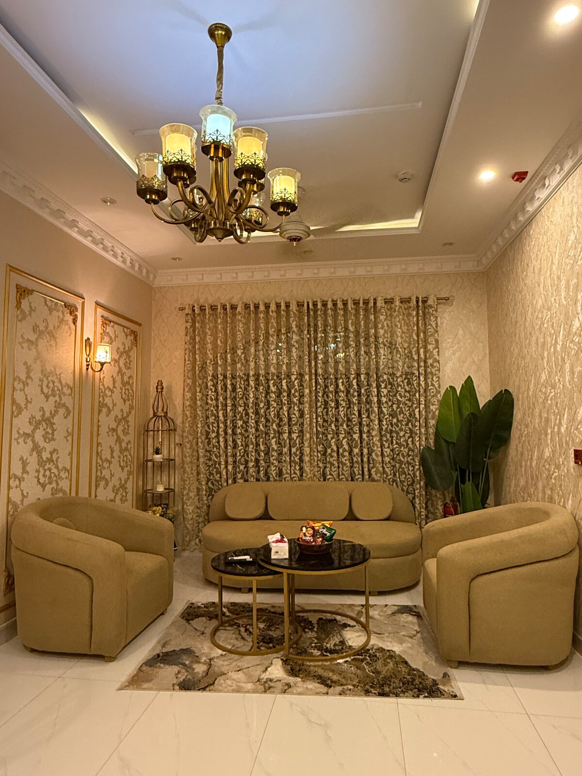 Our 1 BR condo in DHA Phase 5 is where urban chic meets celestial cool. Think: a glowing moon wall for those late-night selfies and a bold dollar-stacked art piece that screams "main character energy" Wake up to park views from your private balcony swing, binge your faves on the 50" 4K Smart TV, or cook up something aesthetic in the fully loaded designer kitchen. The interiors? Abstract, stylish, and made for the feed. Plus, you're right next to Lahore's hottest dining spots.