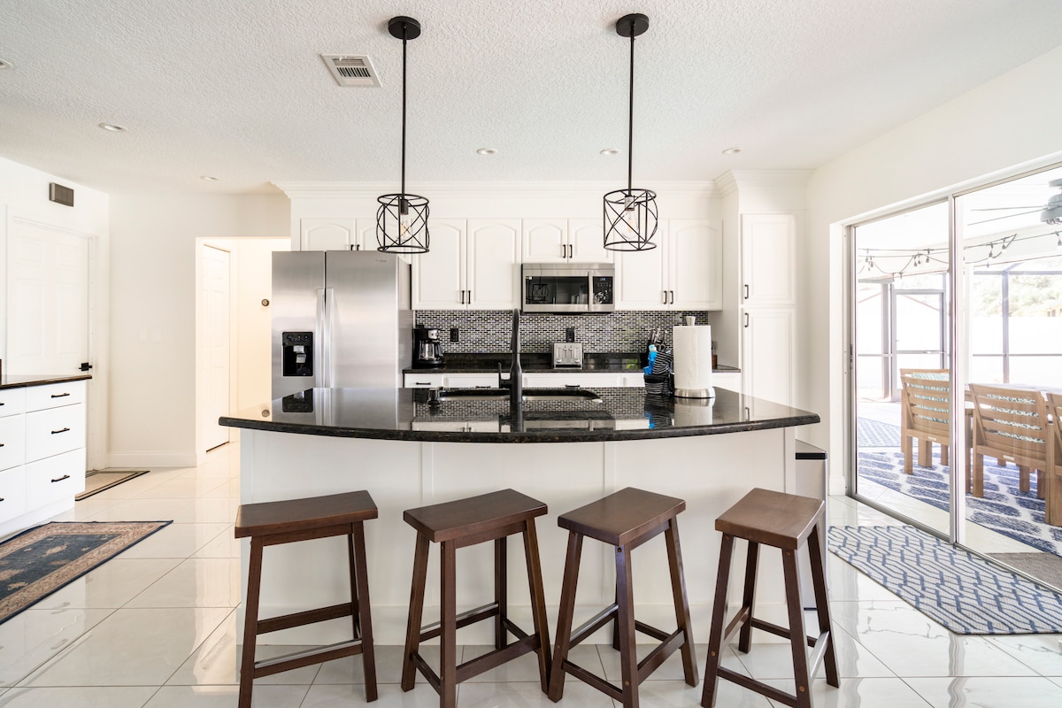 🌟 NOU NOUȚ - TOCMAI RENOVAT! Fiți PRIMII NOȘTRI OASPEȚI în această toamnă 2025 și bucurați-vă de tarife exclusive de introducere! Uimitor 3BR-2BA (1.600 mp) cu suită principală de lux, paturi matrimoniale, șemineu electric și TV de 65 inch. Espresso bar gourmet! PISCINĂ 🌴 PRIVATĂ cu vedere liniștită la iaz - urmărește fauna sălbatică locală din paradisul pur al Floridei! 🏖️ 10 minute până la Siesta Key Beach, 15 minute până la Lido Key și centrul orașului Sarasota. Perfect pentru vizitatorii pentru prima dată! Rezervă acum pentru cele mai bune tarife de toamnă 2025. Abia aștept să-ți urez bun venit! ✨