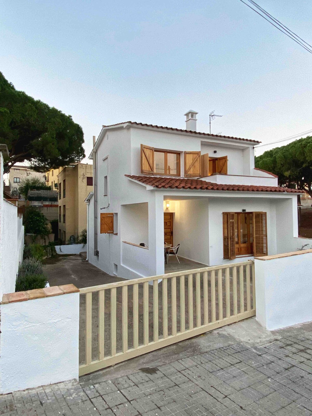 Casă în stil Eivissenc foarte primitoare. 2 dormitoare, 1 baie cu cadă la etajul al doilea. O toaletă, bucătărie americană, living cu șemineu și terasă la primul etaj și garaj pentru unelte cu curte la parter. Situată pe o stradă centrală și liniștită din cartierul Riells. La 350 de metri de plajă și lângă toate serviciile, cum ar fi supermarket, brutărie, farmacie și divertisment pentru copii. Zonă foarte familiară.
