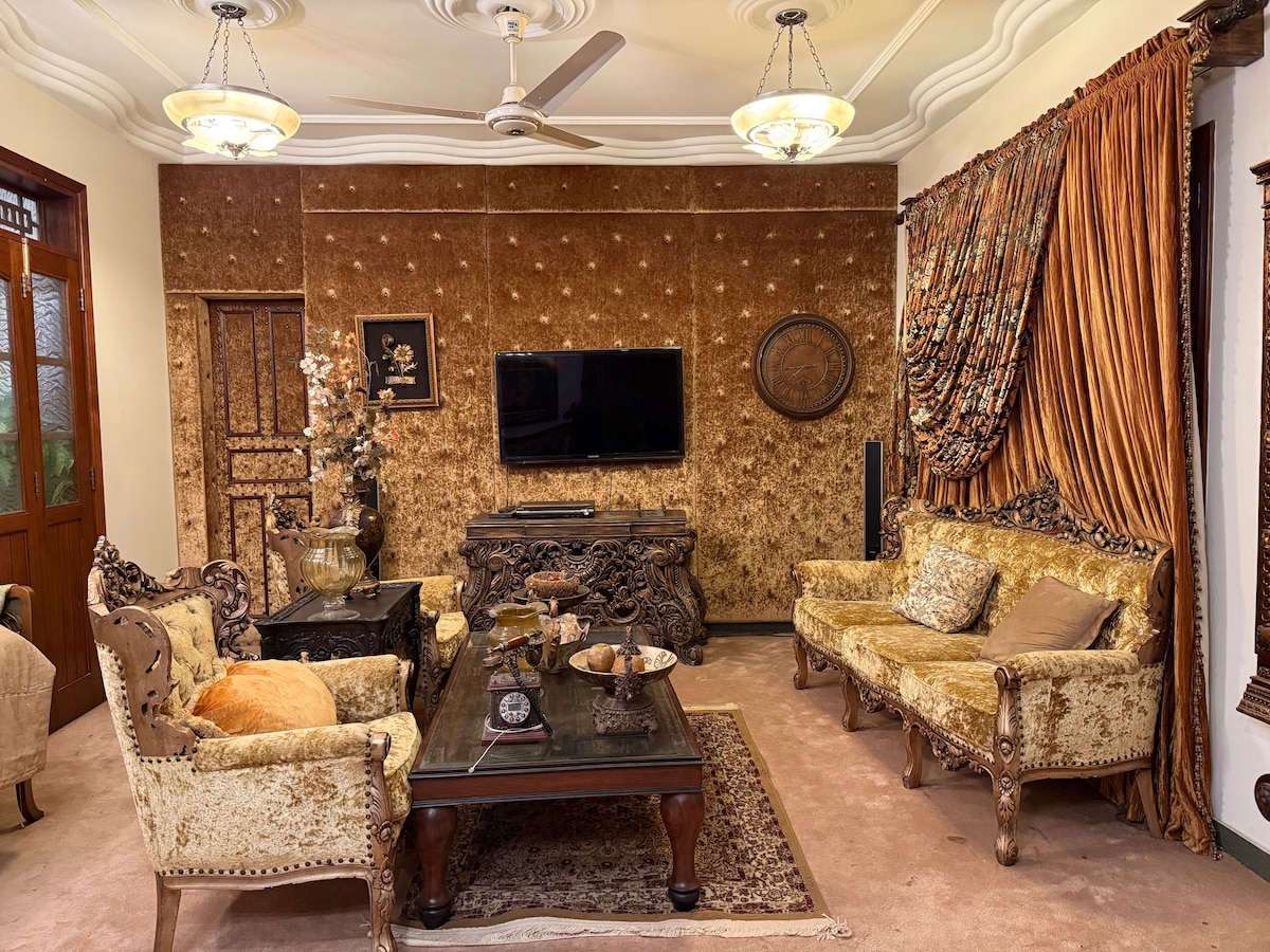 6 dormitoare cu toate băile atașate, casă de lux cu saloane și un salon. Situat ideal la mică distanță de Lucky One Mall, piața KDA, saloane, o varietate de restaurante și un Masjid. Fiecare cameră are baie proprie și aer condiționat. Bucură-te de terasa din grădină, terasa, WiFi și TV. Spălătorie gratuită, serviciu opțional contra cost. Securitate non-stop, paznici privați la cerere, contra cost.