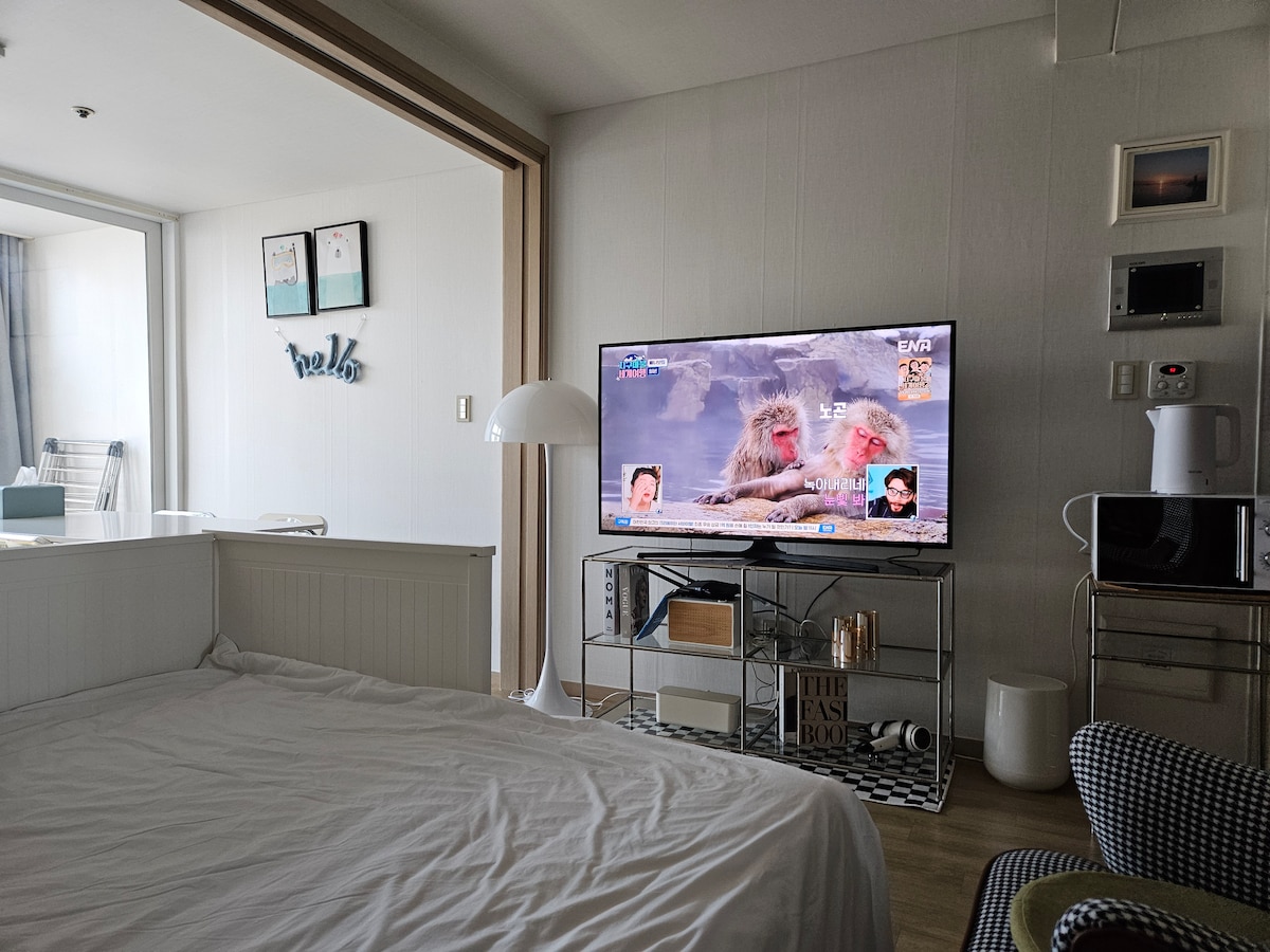 Centrul de ședere Simte marea și mirosul din oraș Electrocasnice și mobilier noi într-o clădire nouă Și cu un parfum bun comandat de maestrul parfumului Am umplut un spațiu modern și simplu. Pentru prieteni, iubiți și călătorii de afaceri Oferă un loc de odihnă confortabil. *Închiriem un proiector cu fascicul contra cost. Din cauza daunelor frecvente, sunt suportate o mulțime de costuri de reparație, așa că în prezent închiriem contra cost. Proiectoarele cu grinzi mari sunt disponibile pentru 10.000 KRW, iar proiectoarele cu fascicul mic sunt disponibile pentru 5.000 KRW. Te rugăm să ne anunți în avans dacă dorești să închiriezi.