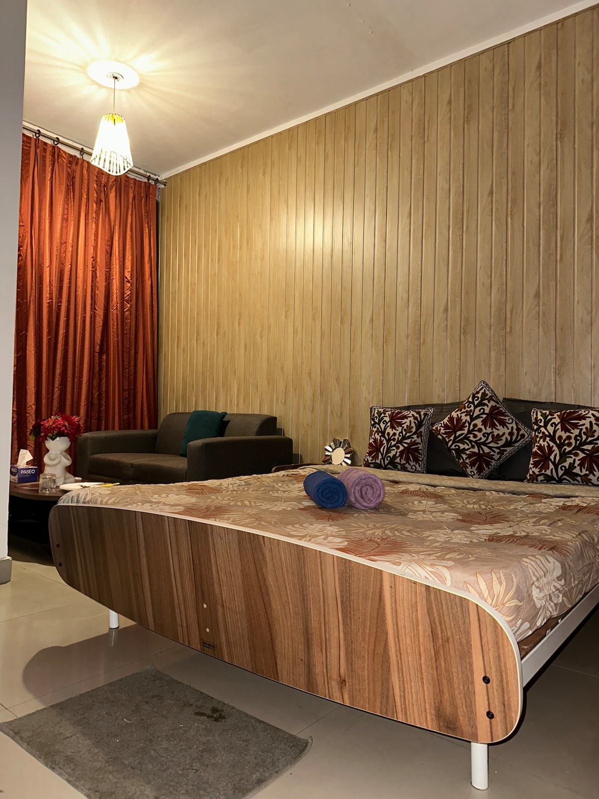 Descoperă confortul de neegalat în apartamentul nostru Boho chic 1 BHK din Gurgaon. Bucură-te de o zonă de living confortabilă, bucătărie bine echipată, un dormitor plin de viață, o baie modernă și un balcon cu priveliști uimitoare. Spațiu de locuit elegant, cu cărți, jocuri de societate, plante și decor boho chic. Scufundă-te în lux, cu alimentare completă de rezervă și securitate non-stop. Confortul tău este prioritatea noastră – experimentează o ședere în care fiecare detaliu este conceput pentru încântarea ta. Rezervă acum pentru un amestec unic de sofisticare și căldură!