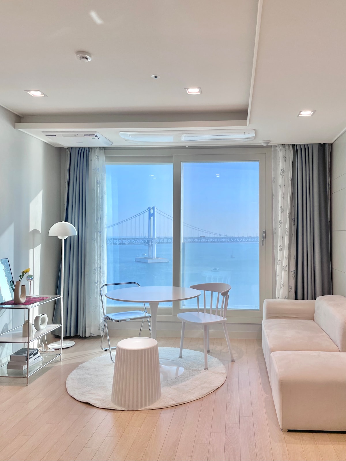 🌟숙소소개 ▪️초근접 광안대교를 볼 수 있는 환상적인 브릿지뷰입니다🌉💓 ▪️자체방역 실시하며 청결을 최우선적으로 합니다🧹😷 ▪️창밖으로 펼쳐진 힐링 오션뷰를 즐겨보세요🌊🍀 ▪️연인, 친구, 가족 모두 편안하게 지내실 수 있습니다(👫~👭👬) * 기본세팅 2인(최대 6인 가능) * 추가 침구류 3인 이상시 제공 * 침실2는 3인이상 예약 시 오픈됩니다. (**2인 예약시 침실1만 사용 가능하시고, 침실2 사용 불가하니 예약 시 착오없으시길 비랍니다. 유아는 카운팅 인원에서 제외됩니다**) ▪️생필품 구비 완료🧴🪥🧼 ▪️얼리체크인 불가합니다🥲 ▪️레이트 체크아웃 유료입니다(문의주세요☺️) ▪️숙소건물 자주식 무료주차장 이용가능 ❣숙소이용 포인트❣ ▪️반짝이는 윤슬✨을 바라보며 해돋이를 감상해 보아요🌅 ▪️매일밤 요트에서 터트리는 불꽃놀이를 즐길 수 있습니다🎇 감각적인 인테리어를 자랑하는 숙소를 200% 즐겨보세요(●'◡'●)❤️ 🛎이용시간 🕒 체크인: 15시 🕚 체크아웃: 11시