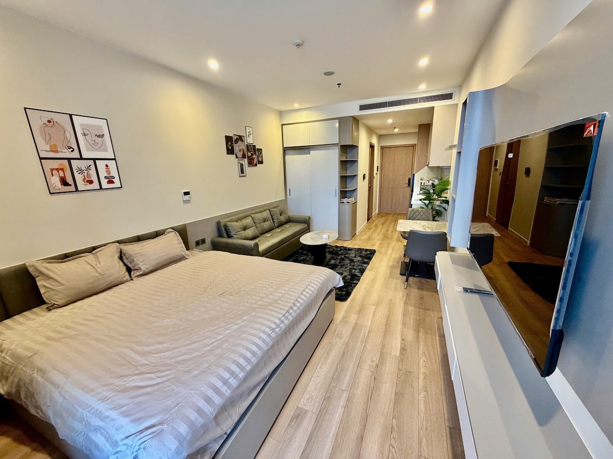 - Punctul culminant principal este camera cu vedere la mare, unde îți poți savura cafeaua de dimineață, poți privi răsăritul luminos sau te poți relaxa cu apusul romantic deasupra mării. - Apartamentul are 1 dormitor, living care leagă bucătăria și este potrivit pentru cupluri sau familii mici. Mobilier confortabil: aer condiționat, Wi-Fi de mare viteză, Smart TV, aragaz,... aduce sentimentul de confort ca acasă, dar totuși completează experiența complexului. - Poziția este chiar lângă plajă – la doar câteva minute de mers pe jos, poți deja să te bucuri de apa albastră limpede.