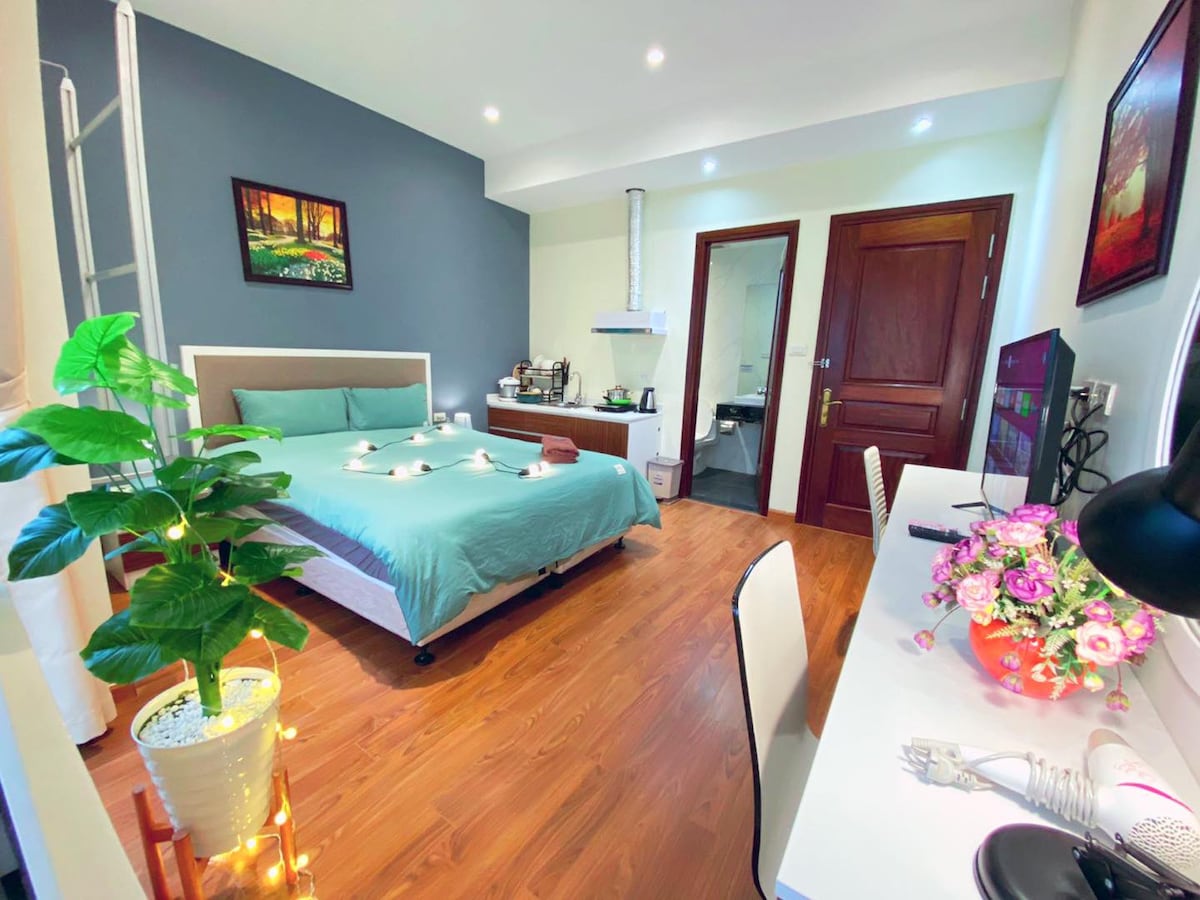 LeafyNest este un mic refugiu liniștit în inima orașului Hanoi, oferind o evadare perfectă din agitația orașului. Atmosfera confortabilă, tonurile verzi liniștitoare și lumina naturală caldă creează un spațiu relaxant unde te poți relaxa cu adevărat. Fiecare detaliu este conceput cu grijă pentru a te face să te simți ca acasă, indiferent dacă ești aici pentru o scurtă vizită sau pentru o ședere mai lungă. Dacă ești în căutarea confortului, intimității și a unui loc care se simte atât familiar, cât și special, LeafyNest este locul perfect pentru tine.
