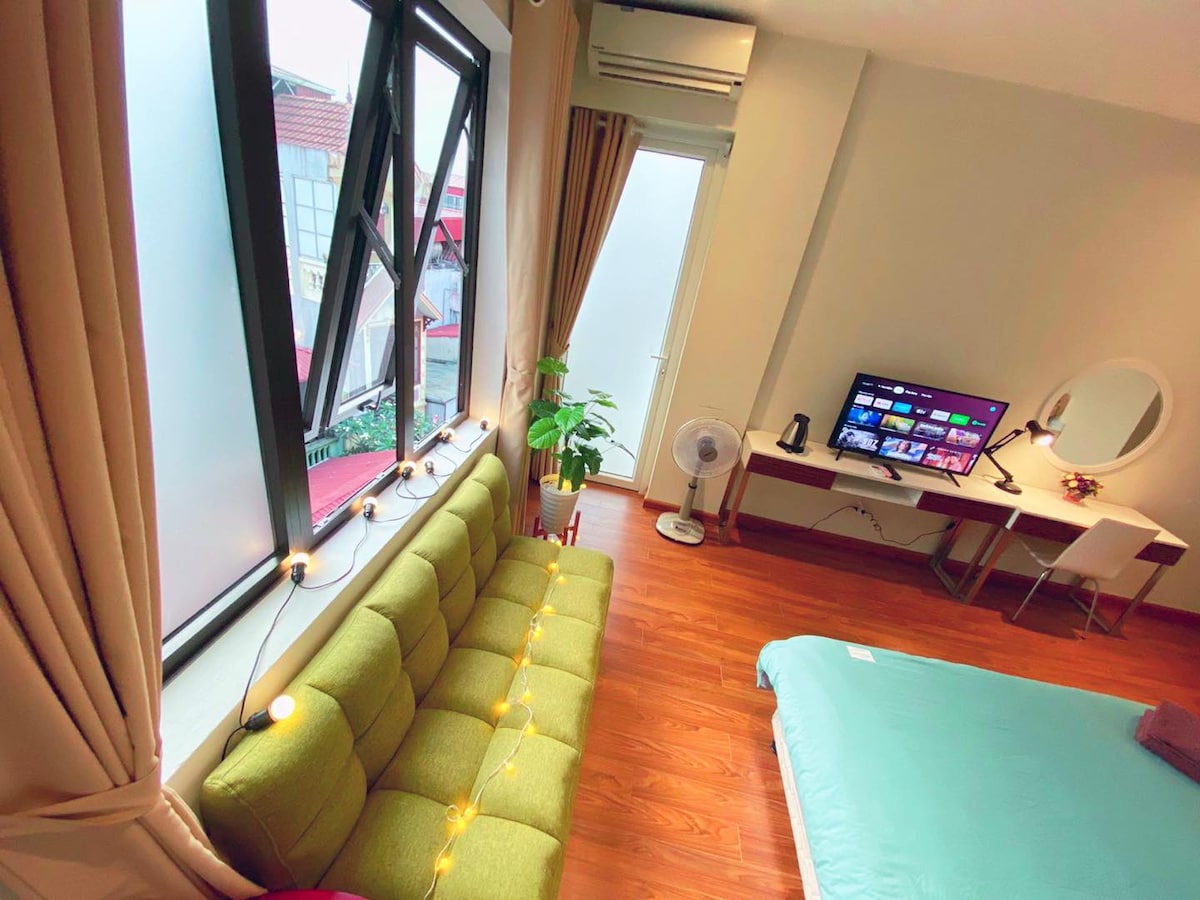 Acesta este un apartament 1BR la etajul cu 50 m2 și la doar 10 minute de mers pe jos de lacul Hoan Kiem.& 3 minute până la lacul Thuyաn Quang. Te poți bucura de acces ușor la tot de la această bază de reședință perfect situată. Este înconjurat de buticuri, cafenele, mâncăruri stradale... Apartamentul este complet echipat cu aparate moderne, Wi-Fi stabil(550 Mbps) și dotări bune. Este păstrată curată și igienică cu aer curat. Locuiesc în interiorul clădirii, atât de ușor de sprijinit atunci când ai nevoie de 10 minute de mers pe jos până la stația de autobuz până la aeroport