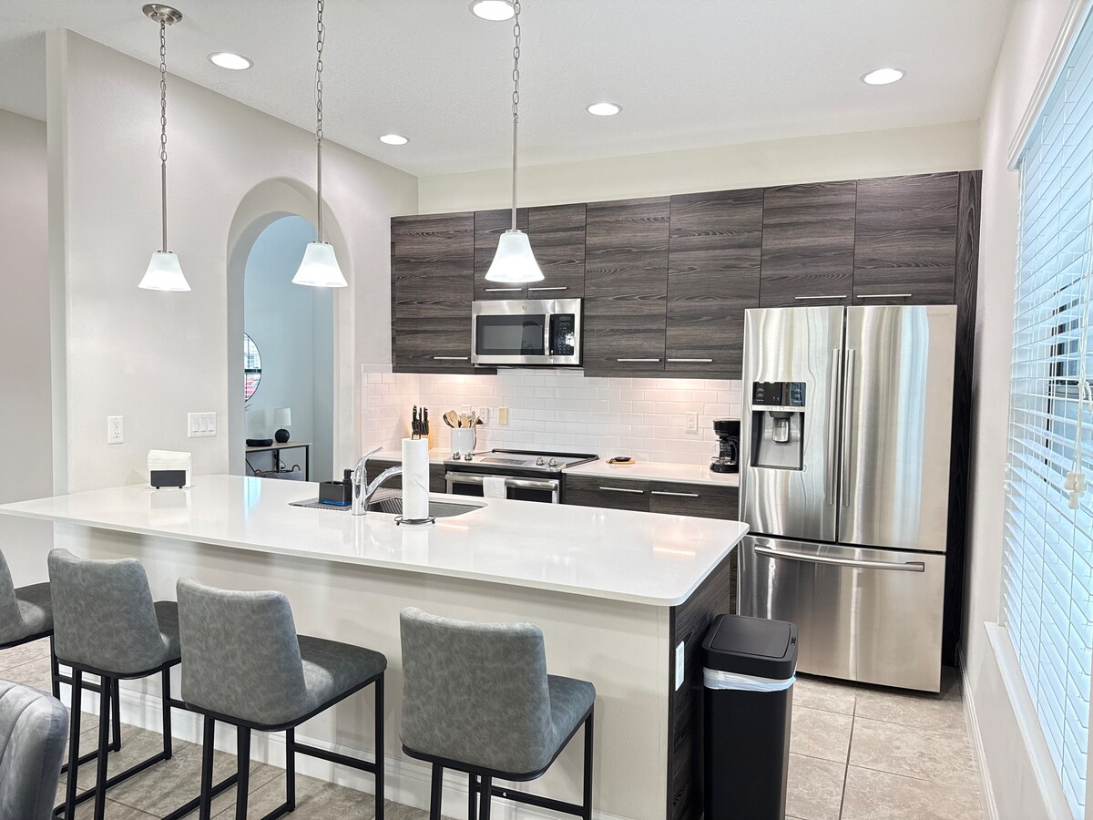 Bine ai venit în această casă de vacanță modernă cu 5 dormitoare și 3 băi: • Situat într-o comunitate de golf sigură, premiată. Între Disney și Legoland. • Două apartamente matrimoniale cu băi proprii • Interioare moderne renovate • Camere tematice pentru copii (Războiul Stelelor + Encanto) • Piscină privată încălzită, taxă suplimentară pentru încălzire 25 USD • Doarme 10 persoane confortabil • Bucătărie complet utilată și zonă mare de luat masa • 24-40 de minute de Disney, Universal și Legoland • Check-in independent non-stop fără contact Această locuință unică are un stil propriu.