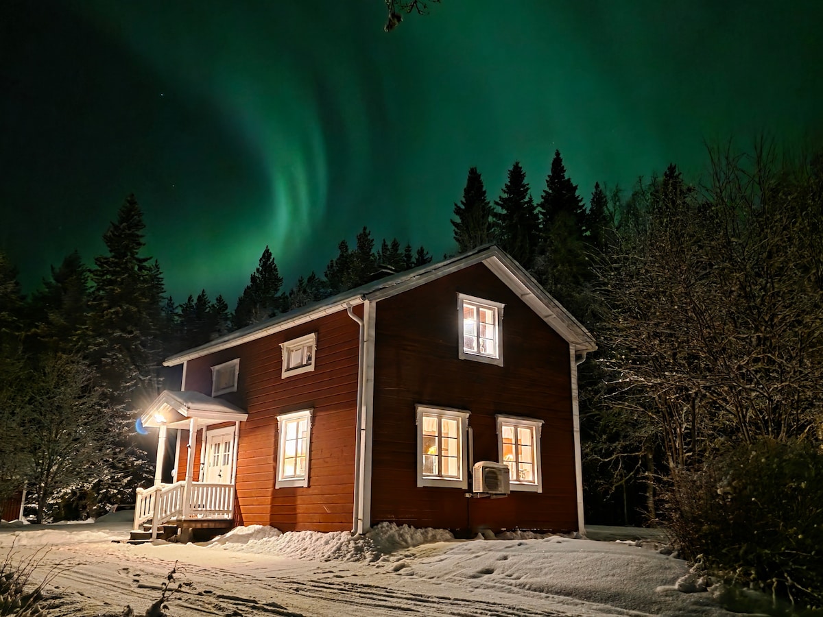 O cabană din bușteni dezvoltată cu dragoste, cu aragaz cu lemne, bucătărie, paturi duble și paturi de o persoană, într-o locație liniștită, la marginea unei livadă de mesteceni. Aici ai confort și aventură sub un singur acoperiș și, desigur, șansa de a urmări luminile nordului direct din dormitor. O bucătărie complet utilată, o sală de mese și o zonă de relaxare confortabilă în fața cuptorului completează oferta în cabana din bușteni. De asemenea, cabana are electricitate.