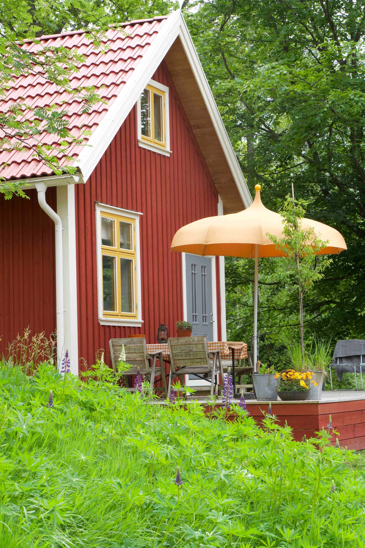 Această casă suedeză de la țară este un refugiu în care să te afli. Este locul perfect pentru a te relaxa aproape de natură. Are o sobă din lemn, o bucătărie frumoasă deschisă, living și dormitor cu uși de sticlă care se deschid spre o terasă mare cu grădină privată. Dormitorul are un pat dublu mare și o posibilitate pentru un pat pentru copii. Există o baie foarte confortabilă cu cadă. Păduri frumoase, lacuri, loc de joacă, brutărie (deschisă vinerea) și ferma de legume regenerative sunt chiar după colț. PN: Transport în comun limitat