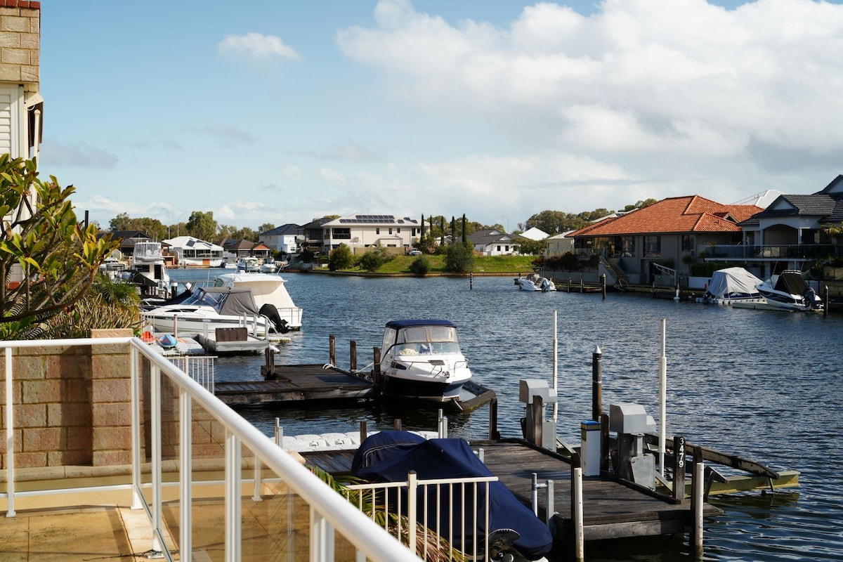 Retragere liniștită pentru a te bucura de o vacanță de familie în această nouă casă în stil Hampton, cu un debarcader privat de 7 m și caiace. Potrivit pentru copiii cu vârsta peste 5 ani. ANIMALELE DE COMPANIE NU sunt permise. Lucrează departe de casă folosind spațiul de lucru; imprimantă și Wi-Fi. Adu-ți barca, rampele în apropiere și 5 minute până la orașul Mandurah și malul apei, cu o mulțime de restaurante și cafenele. Situat într-un cartier liniștit, la capătul canalului ; vin și cină, bucurându-te de apusul soarelui și vedere cu un grătar în alfresco.