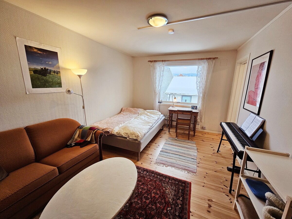 Moderne arealeffektiv leilighet på 32 m2 ligger meget sentralt rett ved gågata- få minutters gange til togstasjonen , strandpromenaden , høgskolen og kulturhuset. Leiligheten ligger i byggets 4. etasje. Dobbeltseng på soverom - og flott sovesofa ( 120 cm) for 2 i stuen som endres fra sofa til seng med et grep. Sengetøy og håndklær legges frem og er inkludert.