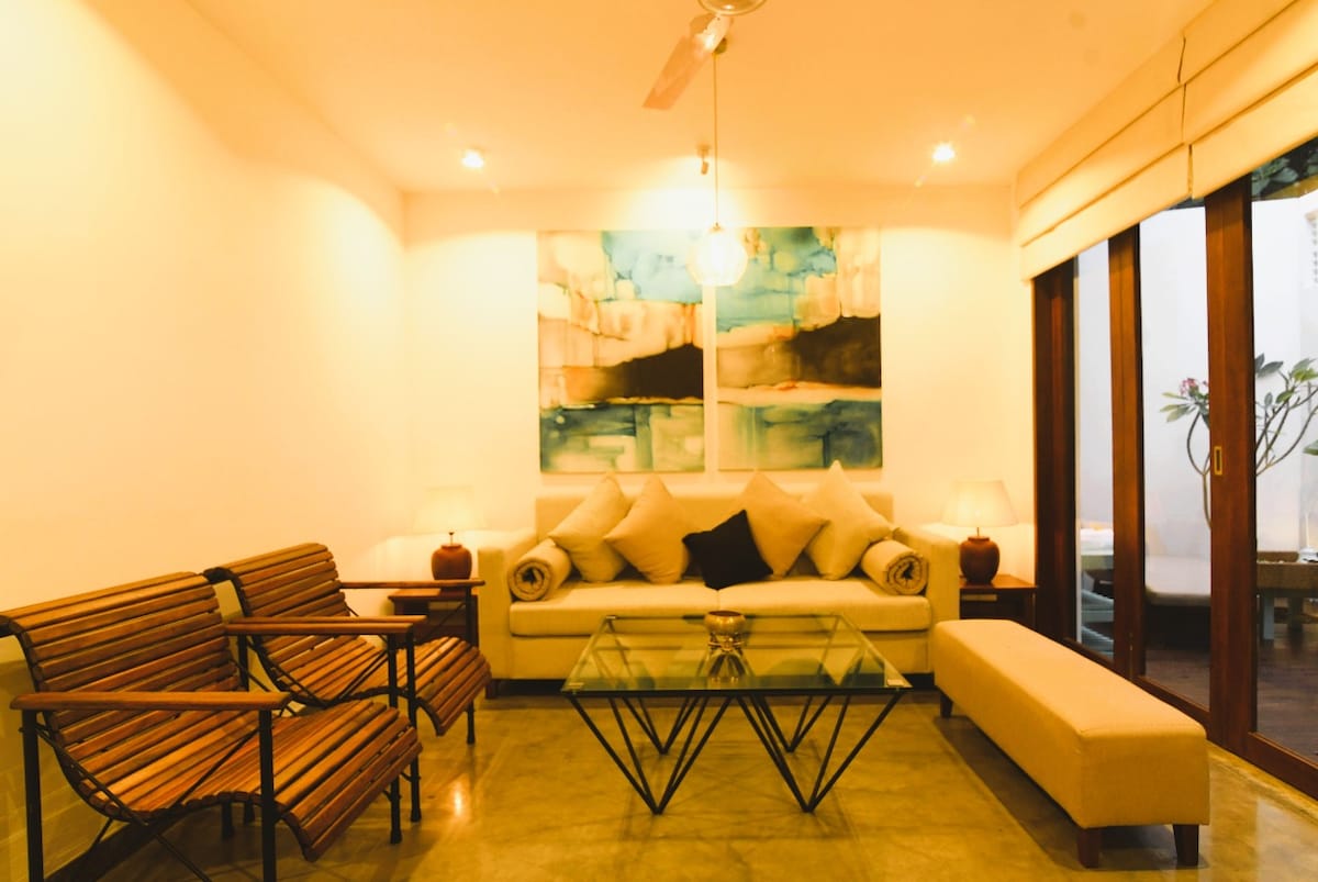 Bine ai venit la Solace Inn Residency Stil și confort în această escapadă primitoare, la 5 minute de plaje însorite, restaurante vibrante și magazine fermecătoare. Ideal pentru aventurieri singuri, cupluri sau familii mici, este poarta ta de acces către paradis. La doar 300 m de plaja Unakuruwa, 600 m de plaja Surf Paradise și 1,6 km de Silent Beach. Rezervă acum pentru evadarea ta de pe coastă 🌊✨ Spațiul: 🌟 Apartament 3-BR cu paturi matrimoniale 🍳 Bucătărie complet echipată pentru nevoile de gătit Balcon 🌿 privat, vedere la grădină