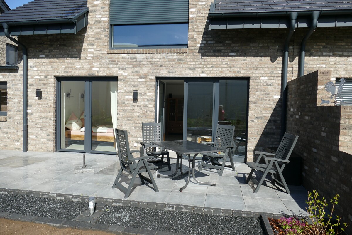 Frumosul apartament luminos este înconjurat de câmpuri de la marginea orașului Bislich. Complet renovat la sfârșitul anului 2018, apartamentul are încălzire prin pardoseală și include o bucătărie nouă complet utilată, cu mașină de spălat vase și o baie nouă. Dormitoarele au pardoseală laminată, toate celelalte zone de living cu gresie mare. Mobilierul este ales cu multă dragoste pentru detalii și emană o atmosferă caldă. O terasă privată (cu grătar) este, de asemenea, disponibilă.