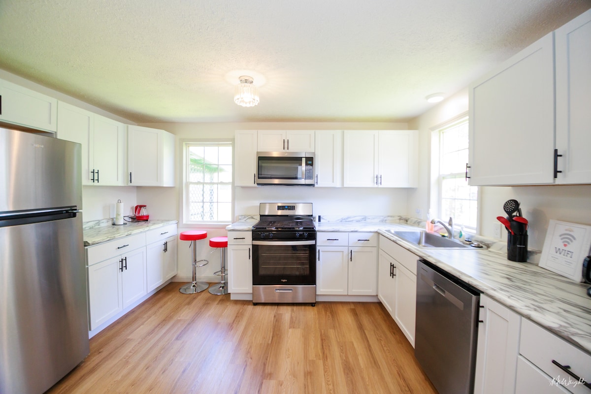 Casă spațioasă cu 3 dormitoare și 2 băi. Curte mare împrejmuită, cu copaci maturi și vatră. Curte pavată spațioasă. Complet mobilată, cu Wi-Fi de mare viteză. Mașină de spălat și uscător de dimensiuni mari. Cazare excelentă dacă participi la Ruoff, care este la doar 15 minute distanță. Aproape de rezervorul geist și restaurantul Wolfies. La 6 minute de mers cu mașina de Walmart, Kroger, Kohls și alte piețe comerciale. La 5 minute de mers cu mașina de Daniel 's Vineyard, care oferă muzică live și diferite specialități de băuturi. Intrare fără cheie pentru ca formalitățile de check-in să fie ușoare.
