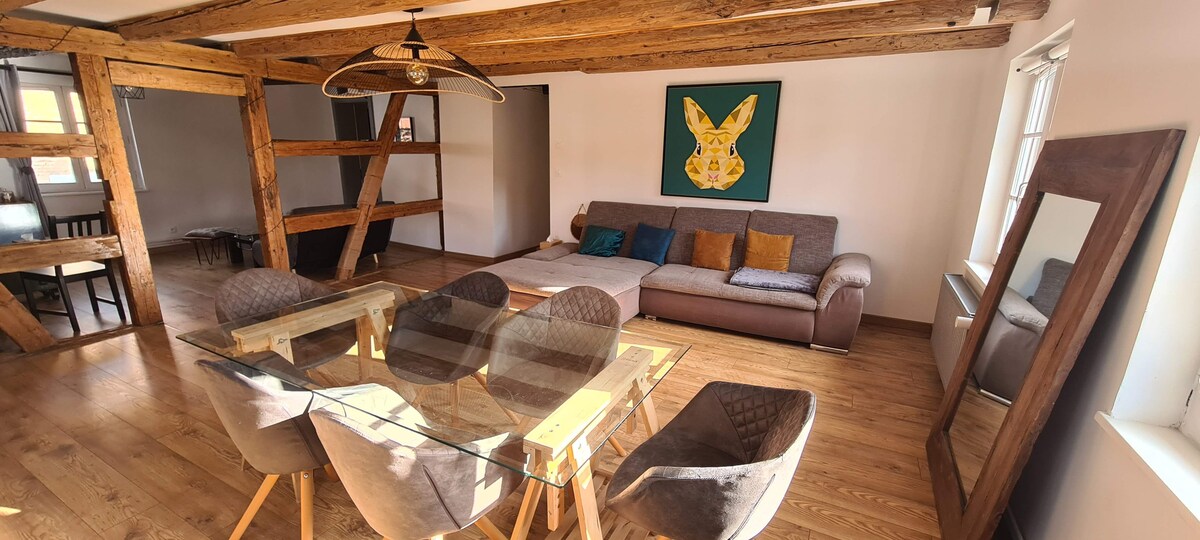 Casă alsaciană proaspăt renovată de 100m2, cu un amestec armonios de mobilier vechi și modern. Întreaga unitate de cazare independentă cu curte privată, grădină, mobilier de exterior. Locație strategică pentru a vizita Strasbourg (10 minute), ruta vinului din Alsacia (Kaysersberg, Riquewihr, Colmar), precum și principalele piețe de Crăciun la sfârșitul anului. Casa este la câteva minute distanță de multe mall-uri, restaurante, brutării, farmacii, medici.