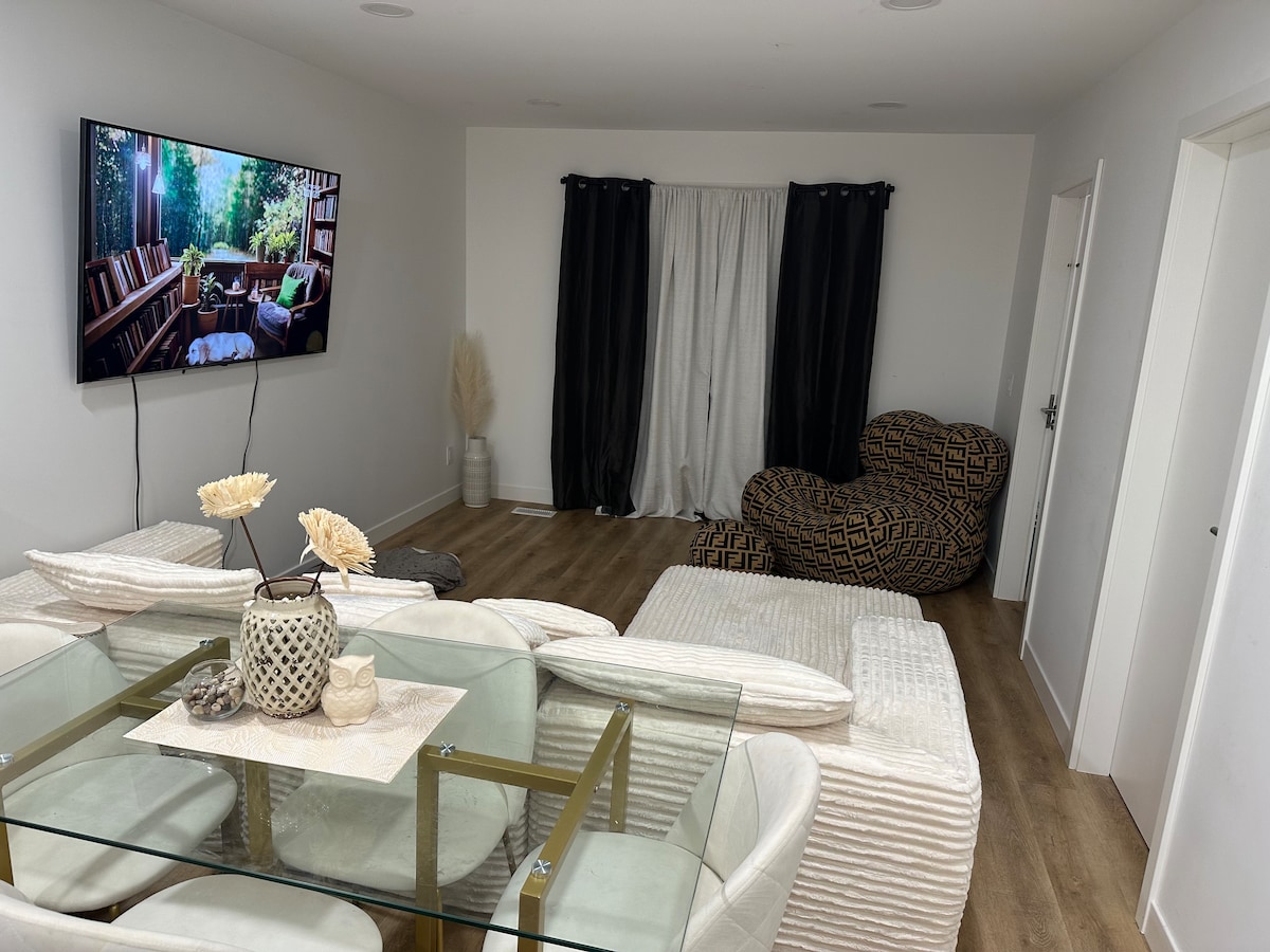 Simte-te ca acasă în această frumoasă suită la subsol cu 2 paturi și intrare privată. Fiecare detaliu a fost atent selecționat pentru confortul și comoditatea ta. Acesta include o bucătărie modernă, complet aprovizionată, perfectă pentru șederi scurte și prelungite, paturi și lenjerie de pat de calitate hotelieră, porturi de încărcare USB și o canapea rabatabilă din piele. Ideal pentru lucrătorii din afara orașului, studenți, vizitatori care se întorc pentru a vedea familia sau pentru cei care au nevoie de cazare temporară între case. Experimentează farmecul orășelului cu dotări de oraș mare.