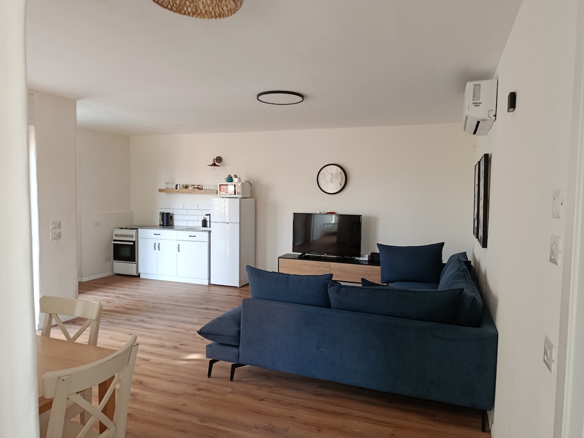 O casă de vacanță nouă și bine echipată în inima unui kibbutz dulce și verde din Valea Elah. Zona este vizitată și plină de natură spectaculoasă, atracții nesfârșite și opțiuni de divertisment pe kibbutz și în zonă. Găzduirea aici va fi potrivită pentru un timp de calitate și relaxare. Unitatea este un spațiu cu pat dublu, zonă de luat masa și bucătărie, duș separat și toaletă. În plus față de pat, există o canapea extensibilă care se deschide într-un pat dublu și poți veni cu copii. Afară te poți bucura de un balcon liniștit în grădină
