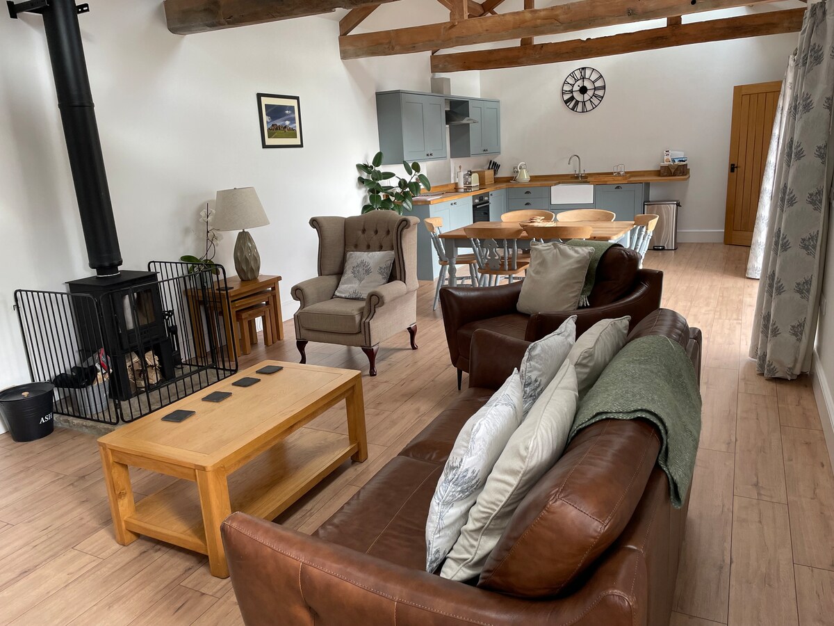 Frumos hambar de stejar din secolul al XVIII-lea și cameră de conservare într-o locație rurală liniștită în apropiere de Kirkby Overblow. Înconjurat de câmpuri și trei acri de grădini NGS. Ideal pentru o vizită relaxantă la Harrogate și York. Super king sau două paturi de o persoană, cu plapume din puf de gâscă și lenjerie de pat White Co. Sufragerie mare cu aragaz cu bușteni și TV inteligent și chicinetă complet echipată în camera de seră cu cuptor cu aragaz. Curte pavată privată și intrare, parcare securizată și Wi-Fi. Mese în funcție de aranjament