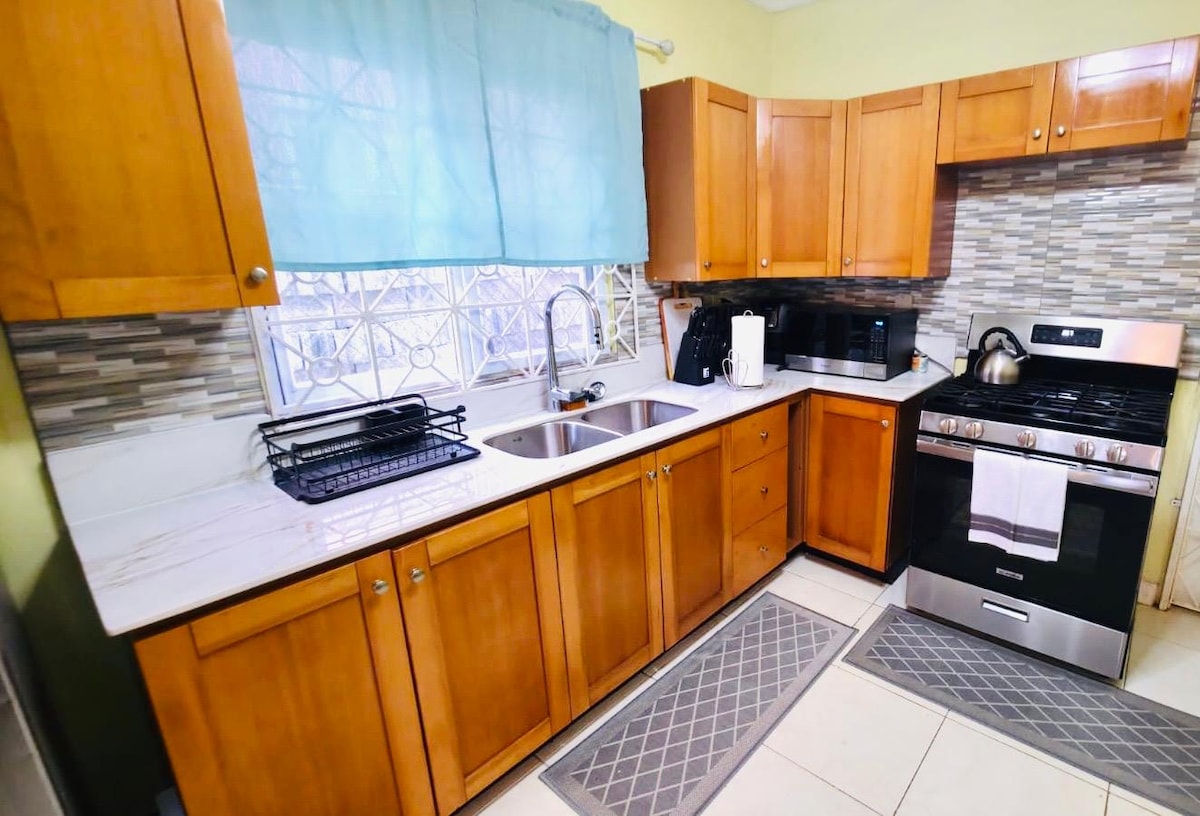 Bucură-te de o experiență elegantă în apartamentul nostru studio situat central. Apartamentul este proaspăt renovat și are tot ce ai nevoie pentru a te simți ca acasă. Ne aflăm la câțiva pași de Harmony Beach Park, Hip Strip (Gloucester Ave./Jimmy Cliff Blvd.,), Doctor 's Cave Beach Club, KFC, piața locală de artizanat și multe altele! Preluarea și predarea la aeroport pot fi aranjate la un cost suplimentar. Tururile și excursiile, oferite de partenerii noștri de încredere, sunt disponibile și pot fi rezervate la cerere.