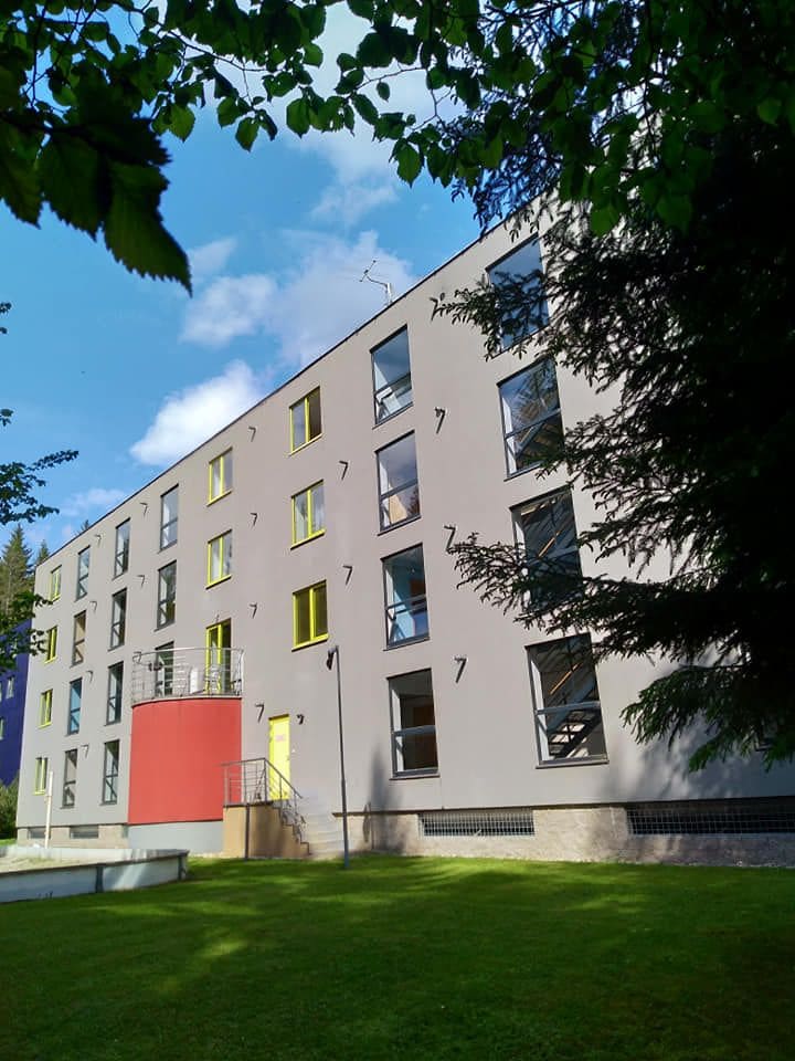 Skog is modern apartment designed in a minimalist Scandi style, using mostly natural materials in the interior. It has about 70m2 and includes 2 separate bedrooms. One is in the attic with lower ceiling. A spacious terrace belongs to the apartment. It is situated in the neighbourhood with some other built houses in similar style within walking distance to the centre. Mumlava waterfall is only 10mins forrest walk. 007 building (gym and squash centre) is being renovated from 07/2025 to 03/2026.