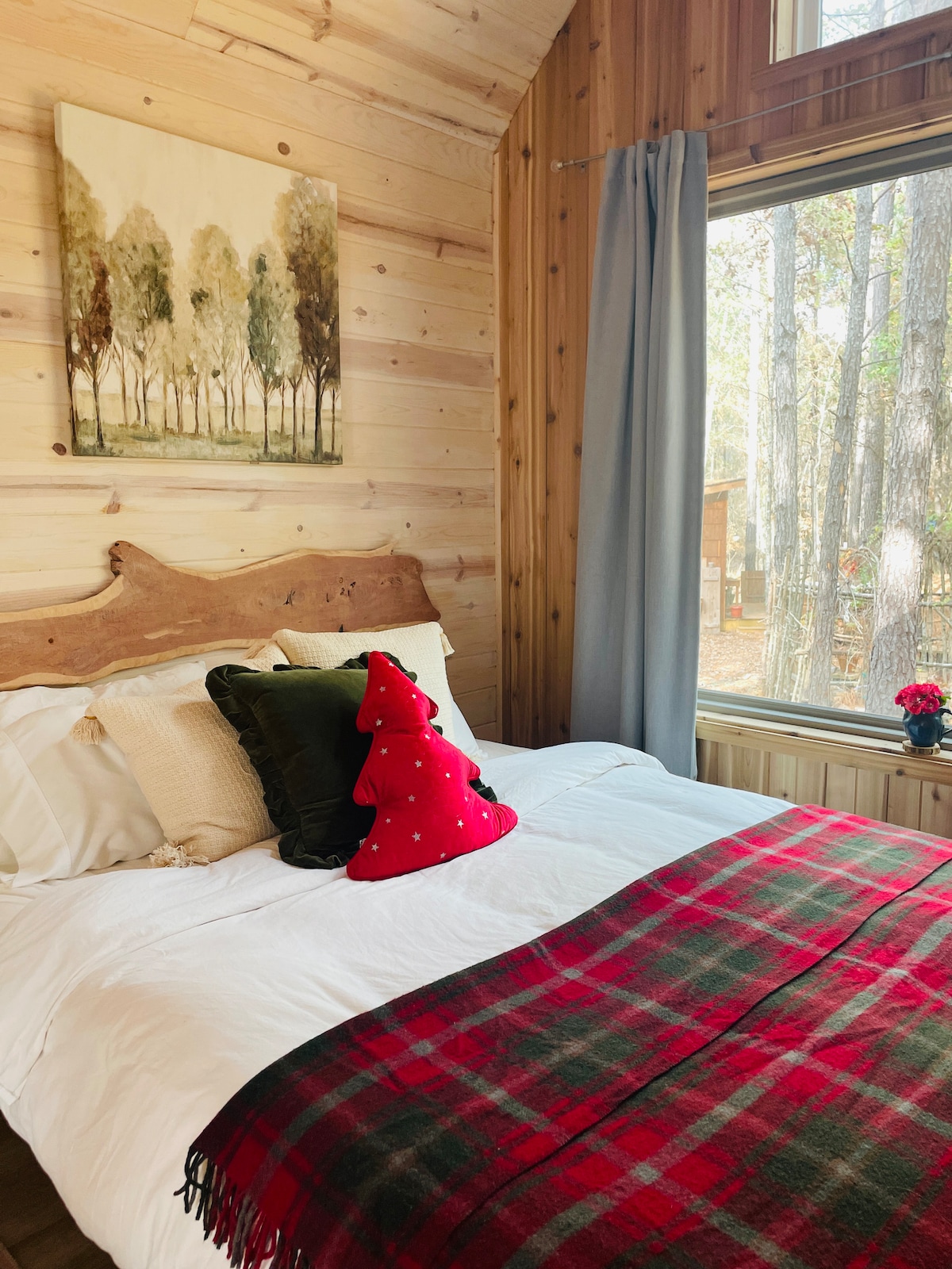 Can you say RESTFUL RETREAT?! Nestled on 20+ acres, the cabin is a beautiful place to rejuvenate. The open concept interior is all wood, many planks were hand-crafted for “old world” feel. Kitchenette, desk, loft, and porch. Just three-minute walk from gardens, infrared sauna, soaking tubs, and outdoor showers. A peaceful space to rest, refocus, and refuel. Guest say that our queen-size bed is the most comfortable ever! Conveniently located 1 mile from Interstate 20, 5-10 min town center.