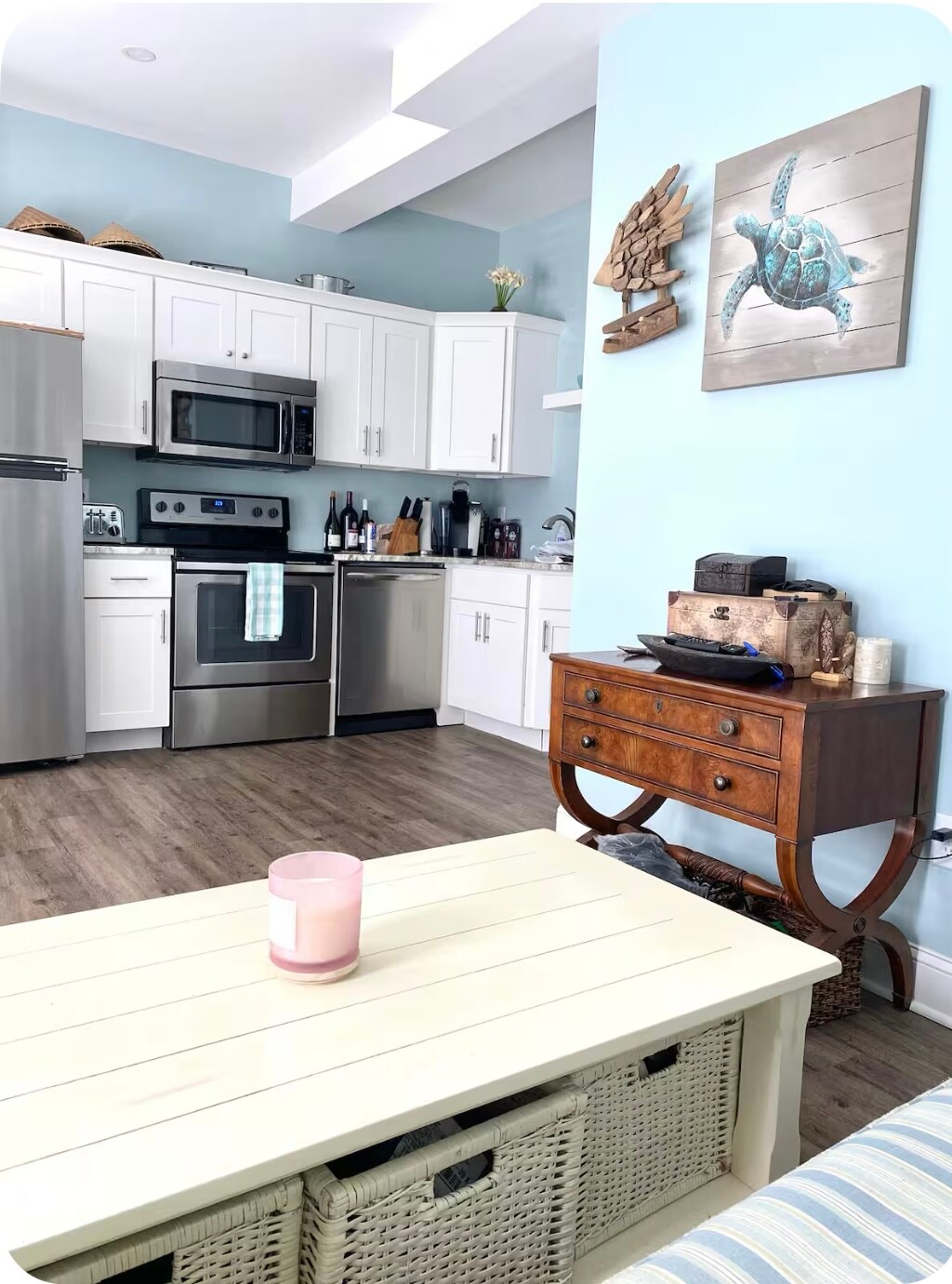 Acest refugiu de surf LBI complet renovat, cu 1 dormitor, se află la o distanță foarte scurtă de mers pe jos de plajă. Este, de asemenea, o plimbare apropiată de restaurante excelente, înghețată și activități. Plaja din golf și concertele locale sunt la câțiva pași, la fel și Hotelul LBI!! Insignele de plajă sunt incluse din iunie până în august!