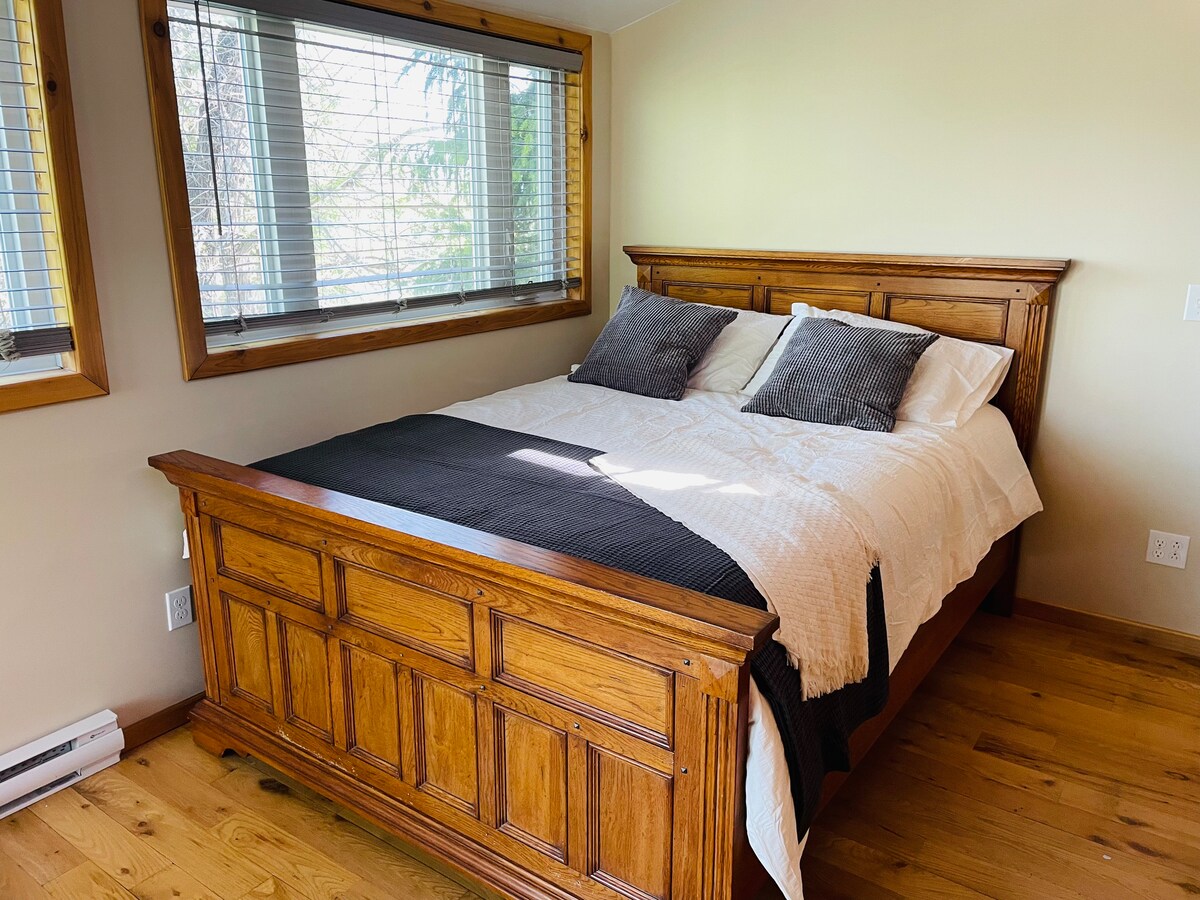 Relax with family and friends. Kids & pets welcome! ➤ Private Waterfront and dock for fishing & boating ➤ Three private bedrooms sleep six comfortably. Plus a couch and cot available if needed! ➤ Fenced yard with dock, deck, patio & gas BBQ. ➤ Free WiFi with 55" Roku TV and DVD player. ➤ Free parking for up to 3 vehicles onsite. ➤ Free use of a canoe, 2 paddle boards and 2 kayaks with life jackets. ➤ Dishes, linens & bath towels included free. ➤ Eat in kitchen and bright comfortable family room.