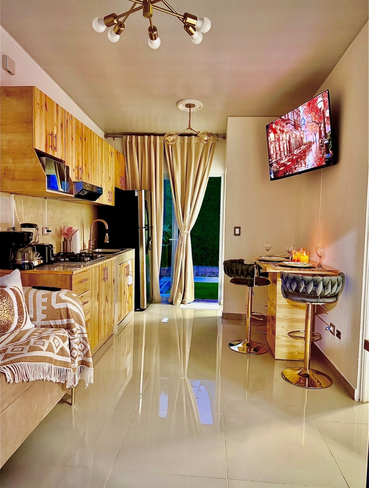 Garden Loft oferă un design elegant, confortabil și funcțional în inima orașului San Miguel. Are: •1 cameră cu aer condiționat 1 pat king-size 1 pat pentru copii mici. 1 țarc/pătuț 2 canapele extensibile •O bucătărie complet utilată •Mașină de spălat + suport pentru haine • Zonă de lucru cu Wi-Fi • Grătar pe terasă • Parcare acoperită cu poartă electrică Bucură-te de o locație convenabilă, la doar câteva minute de restaurante, magazine, atracții turistice. Perfect atât pentru vacanțe, cât și pentru călătorii de afaceri.