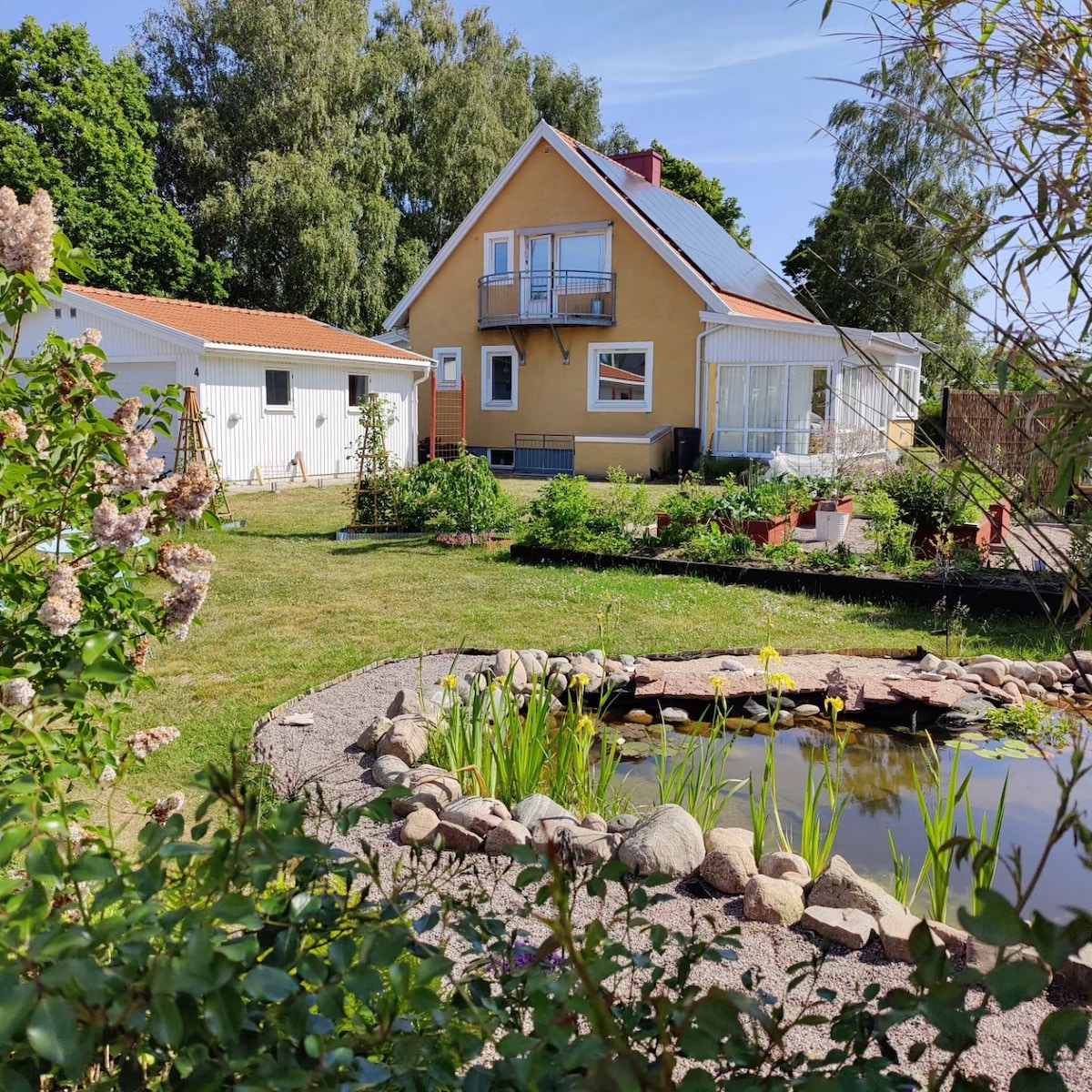 Relaxează-te în această cazare liniștită și elegantă. O idilă. Aproape de mare/plajă la numai 400 de metri și de rezervația naturală Grimsholmen cu faună sălbatică mare. Aproape de Smørkullen, care este un punct de vedere fantastic. 10 minute până în centrul orașului Falkenberg. Cu o terasă mare orientată spre sud,🌞 cu acces la grătar cu cărbune/gaz. Grădină mare, bine întreținută. Standard foarte ridicat. Încărcarea mașinilor electrice este disponibilă. Cazarea ta este de două case mai mici, nu casa principală. Te rog să verifici fotografiile.