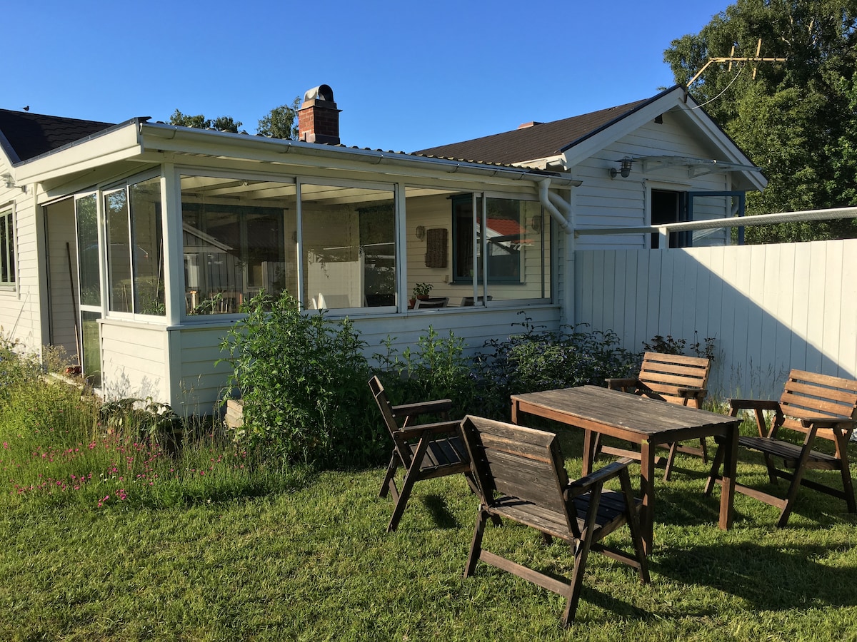 Fräsch stuga nära stad & strand m kök, badrum o AC