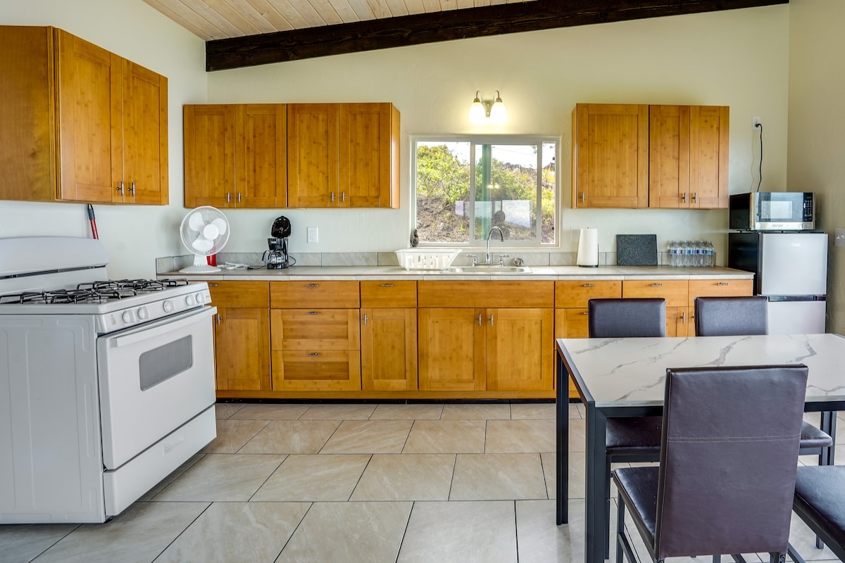 „Ke 'enaMa Puna” | Duș privat în aer liber Un paradis liniștit te așteaptă pe tine și pe persoana iubită în acest studio confortabil cu 1 baie din Keaau, Hawaii! După ce explorezi Paradise Cliffs din apropiere sau plaja Shipman, clătește-te în dușul exterior și relaxează-te pe veranda din față în timp ce admiri peisajul luxuriant din jur. Dispunând de o bucătărie bine aprovizionată, un Smart TV și o zonă privată de spălătorie, această locuință de vacanță are tot ce îți trebuie pentru o ședere fără probleme!