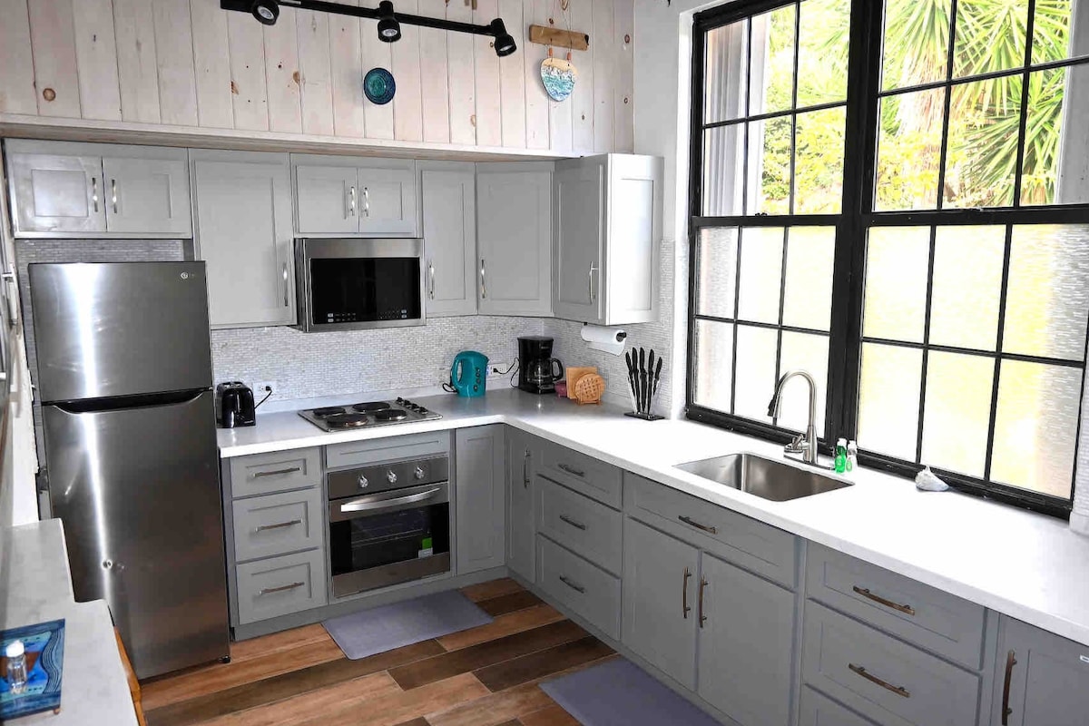 Bucură-te de frumusețea naturală a unui sat local din Caraibe, la doar 1-2 minute de mers pe jos de plaja Crabbe Hill, una dintre cele mai bune plaje din Antigua. Ușile duble private te duc într-un studio în plan deschis de la parter, cu o bucătărie complet utilată, pat dublu, sală de duș și aer condiționat. Bucură-te de un pahar de vin și un apus de soare din curtea pavată cu pat de zi și grătar. Șezlongurile și umbrelele de plajă de la Crabbe Hill Beach Rentals sunt, de asemenea, incluse. Perfect pentru un refugiu creativ, un călător solo sau o escapadă romantică.