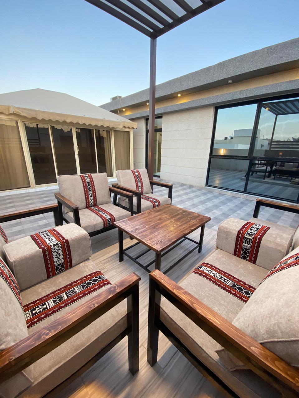 شقة بلو روم طراز فيكتوري بجلسة خارجيه